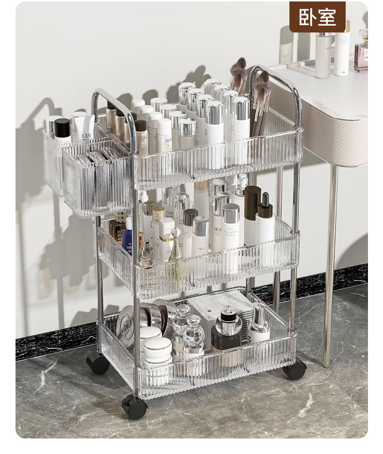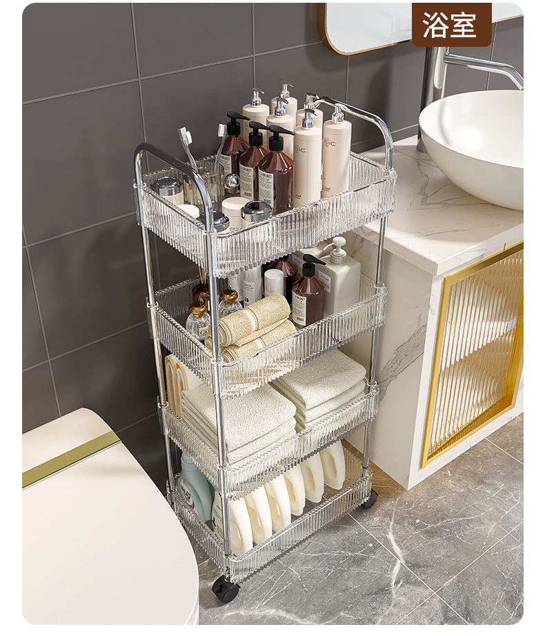 투명 스토리지 랙 스낵 카트 바닥 모바일 욕실 화장실 저장 상자 다층 화장품 캐비닛 아크릴
