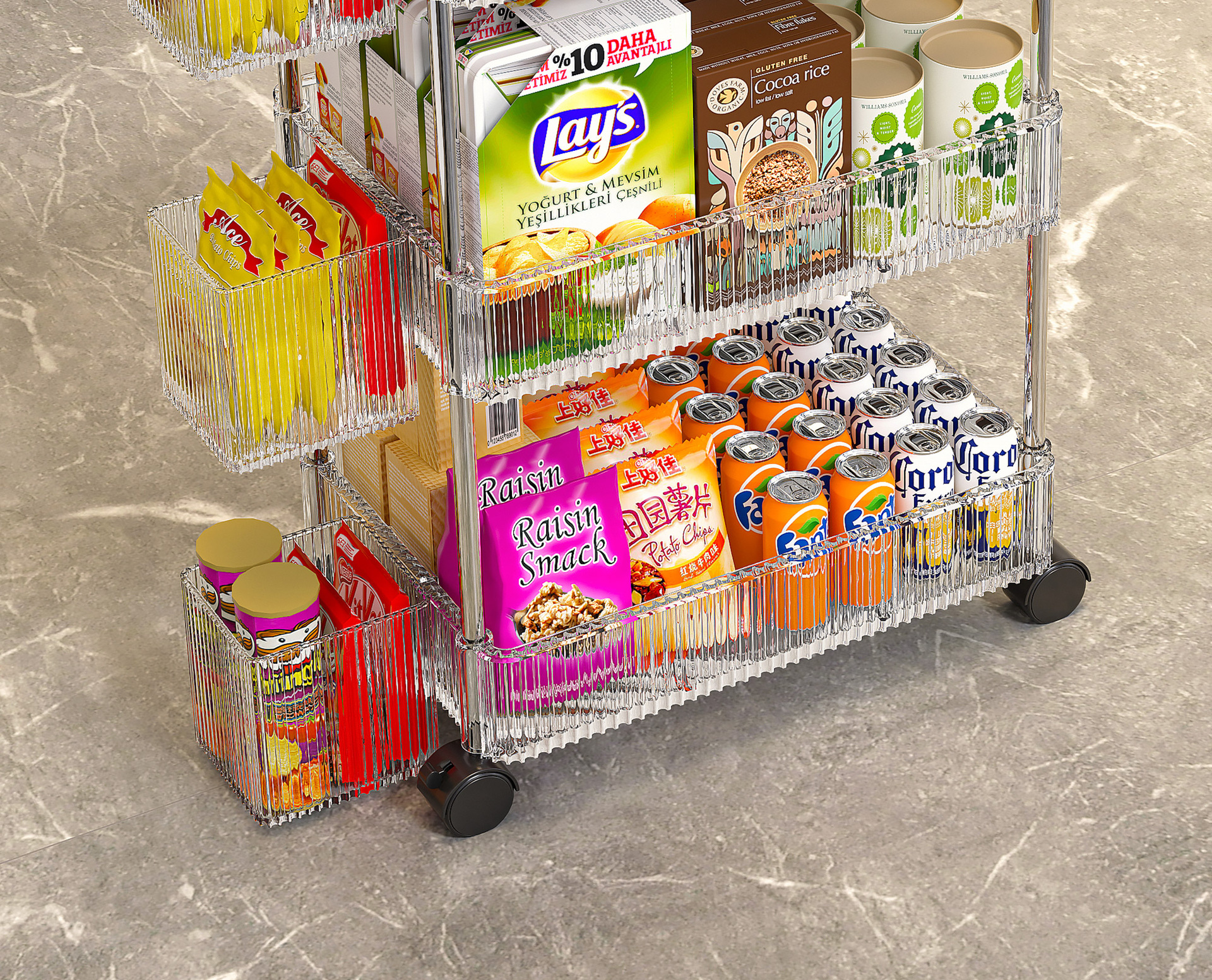 투명 스토리지 랙 스낵 카트 바닥 모바일 욕실 화장실 저장 상자 다층 화장품 캐비닛 아크릴스토어 가기