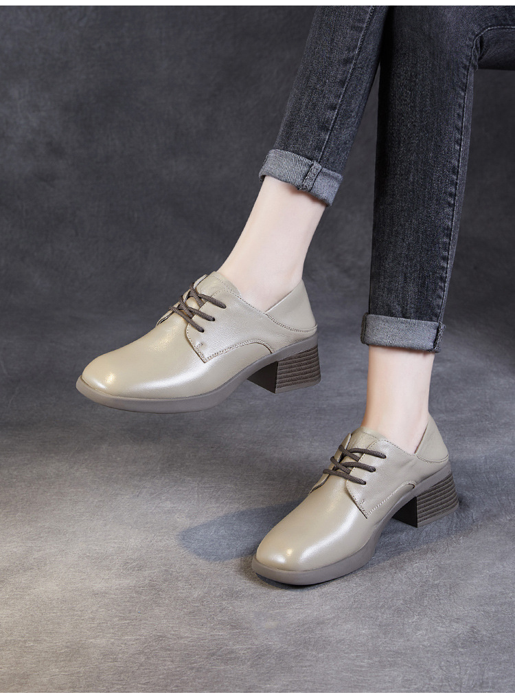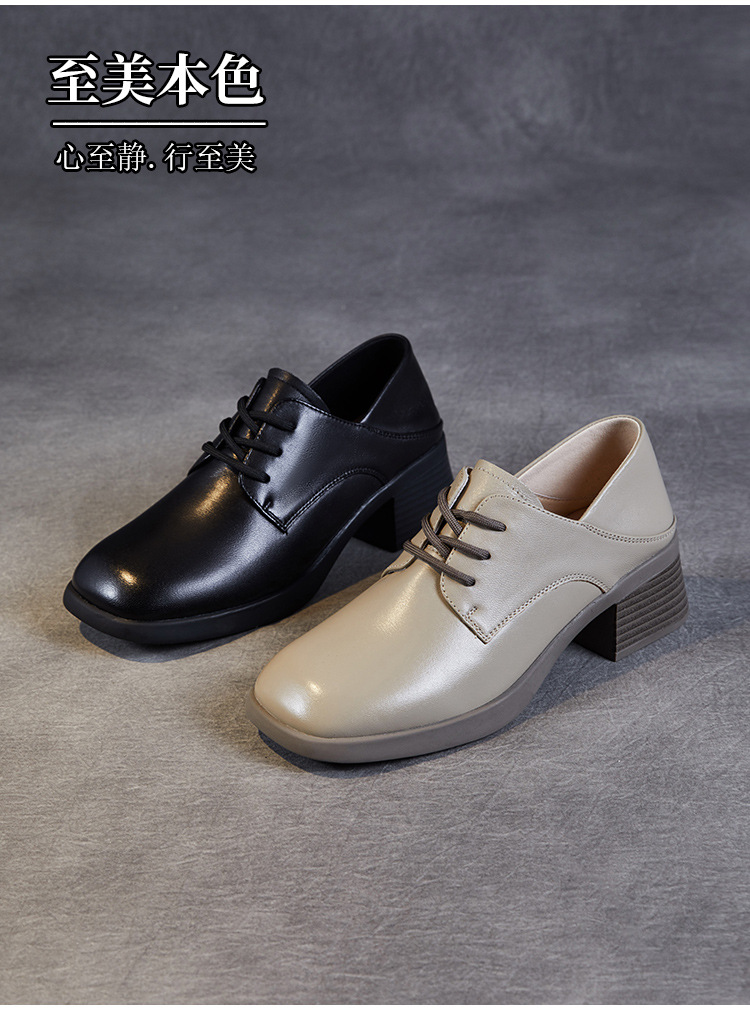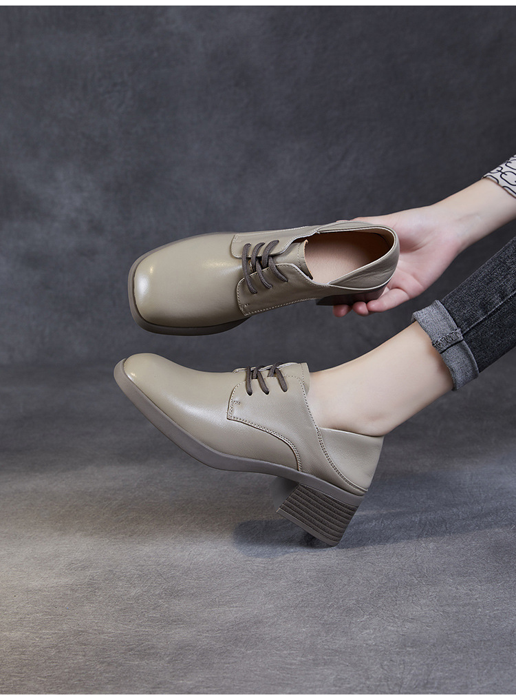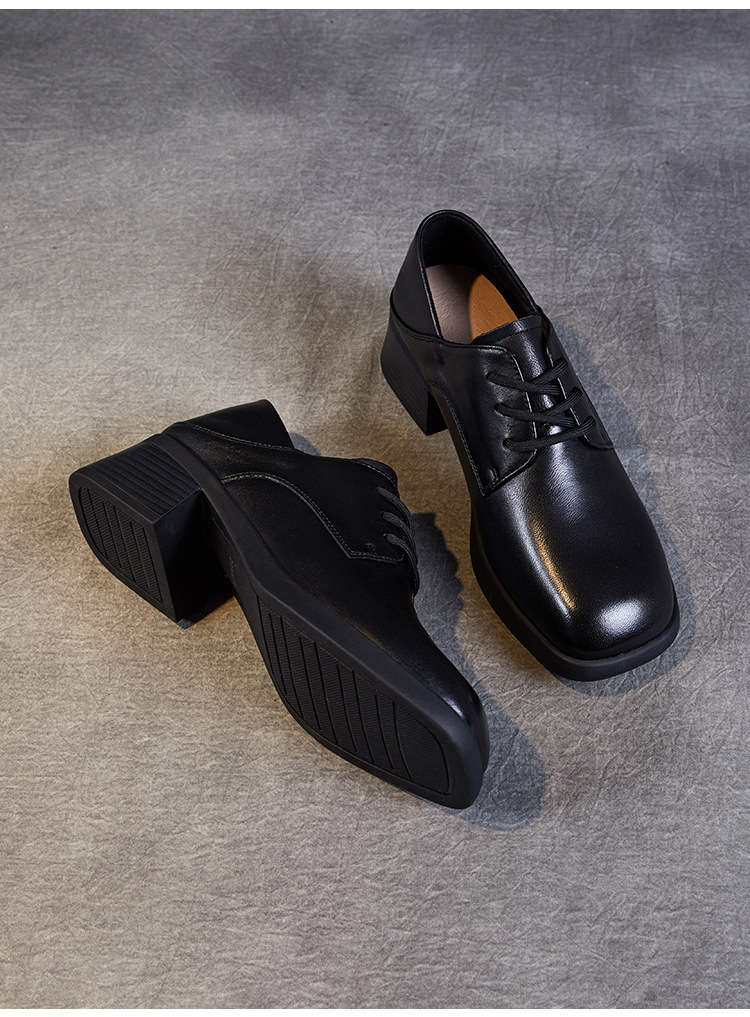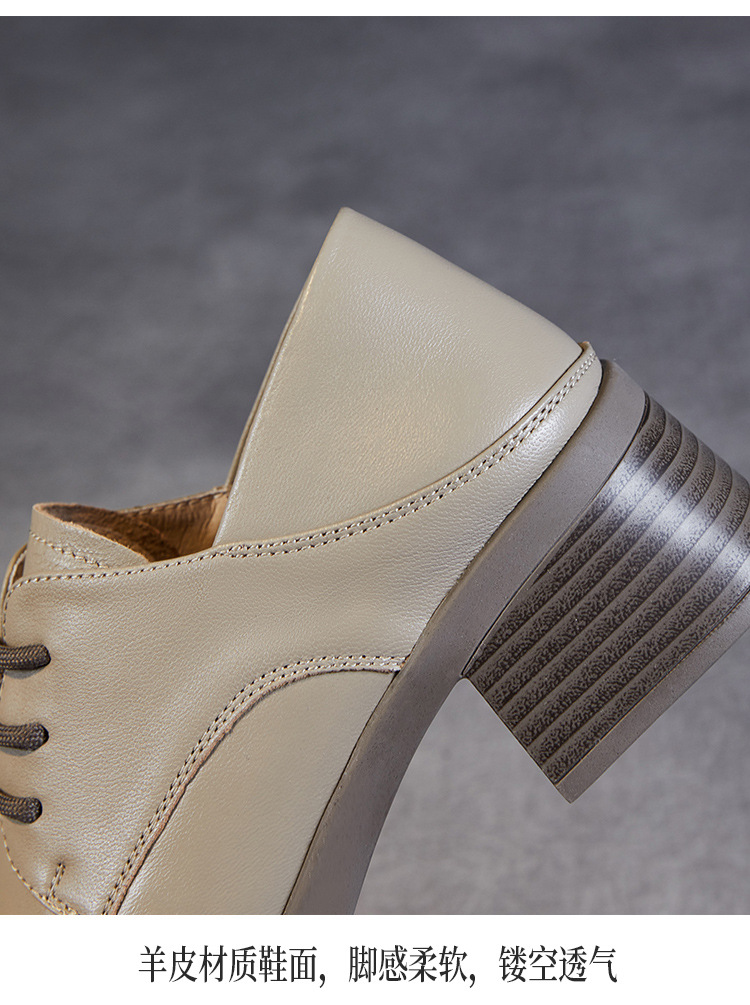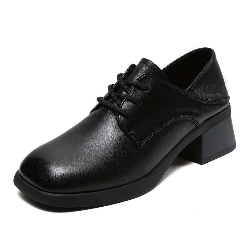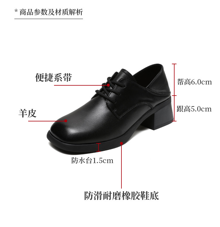 사각 발가락 스웨이드 레이스 업 가죽 신발 여성의 2024 가을 새로운 전문 하이힐 딥 입 싱글 레이어 신발 영국식 브록 신발스토어 가기