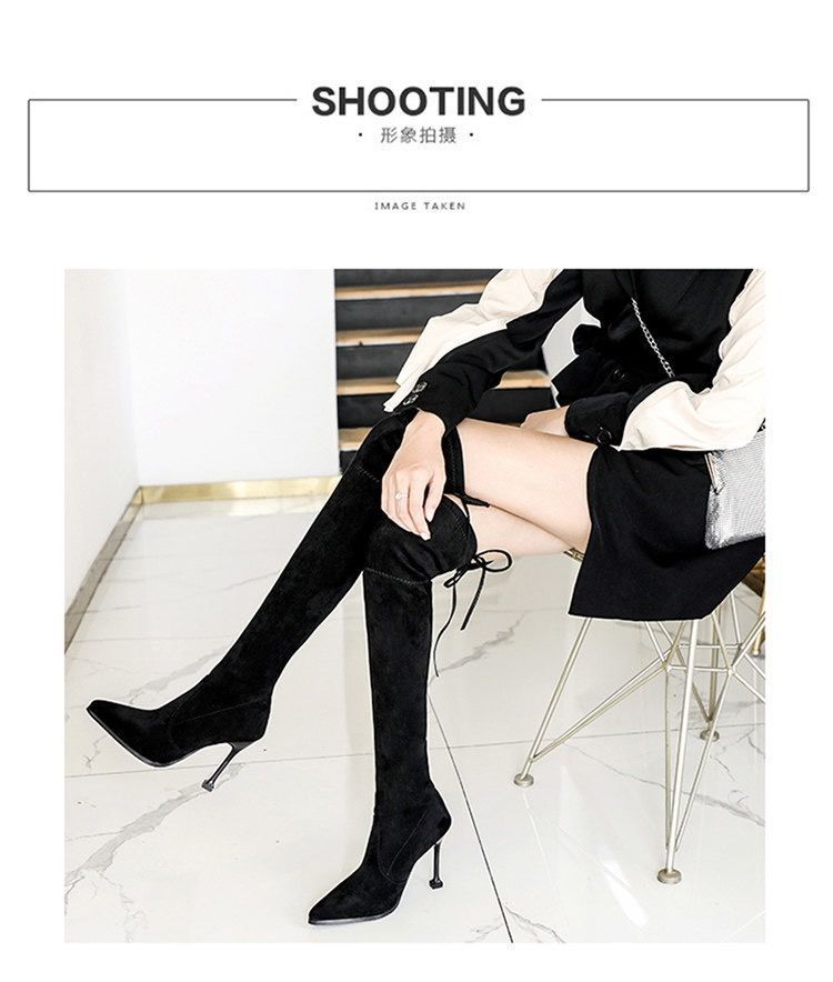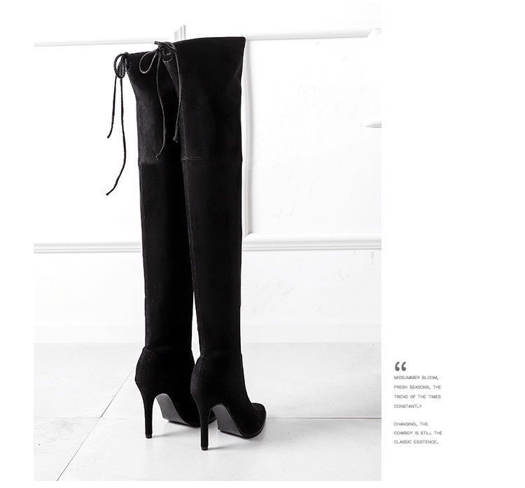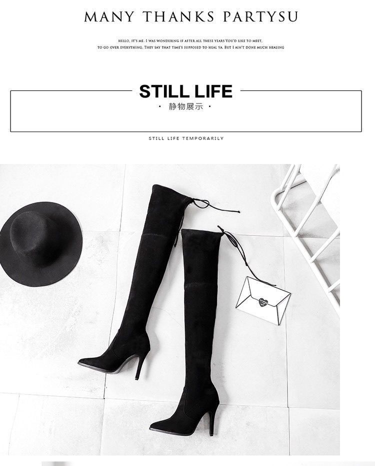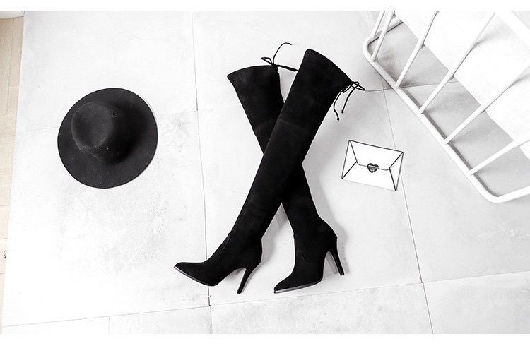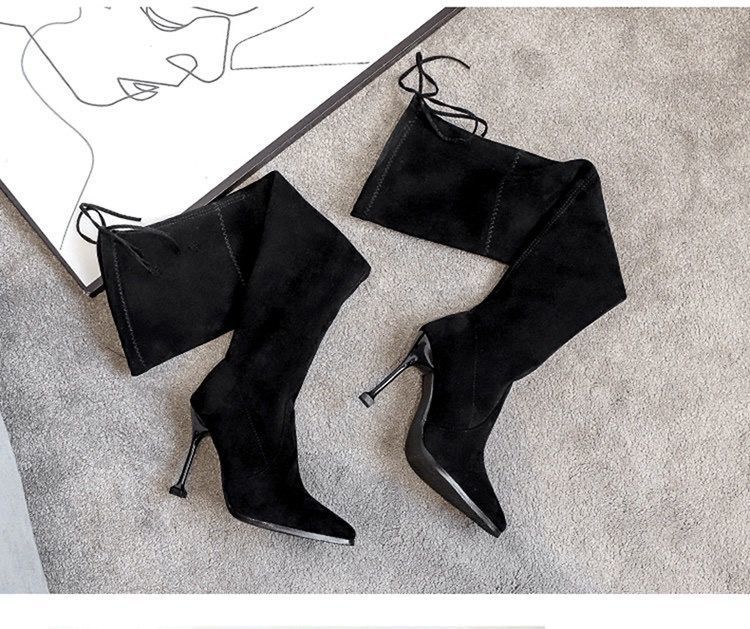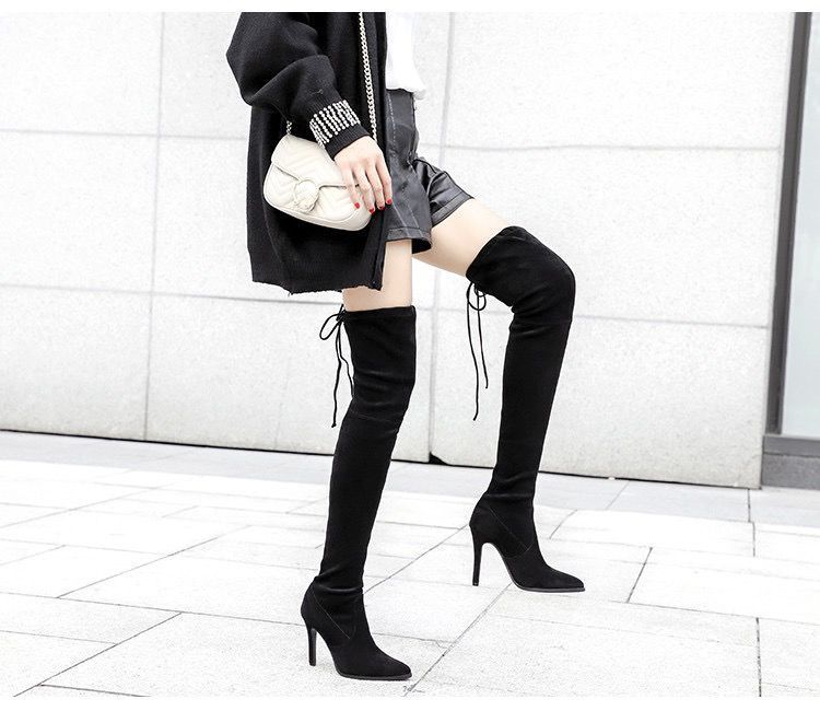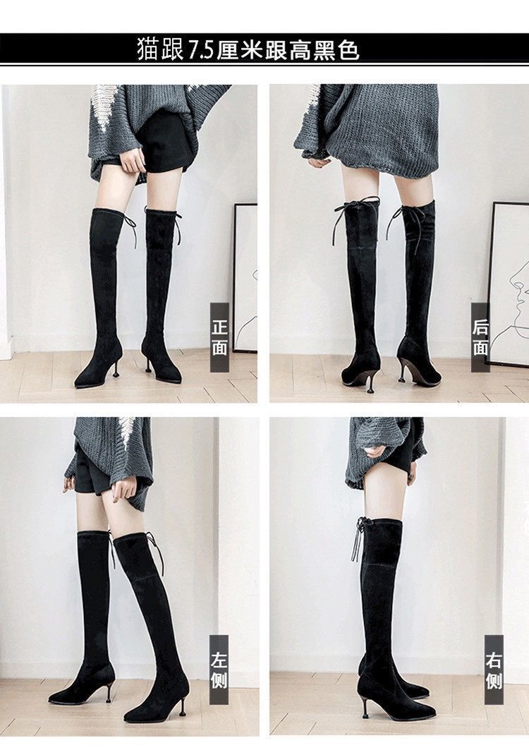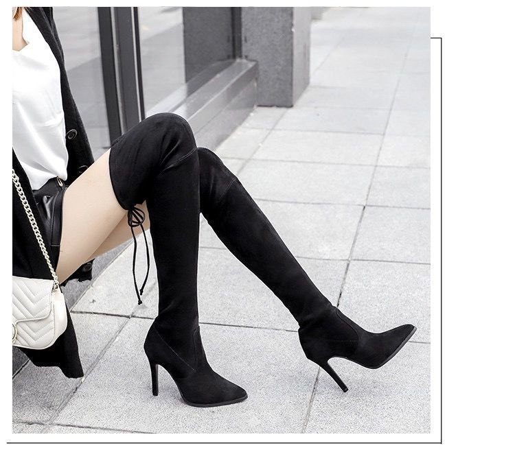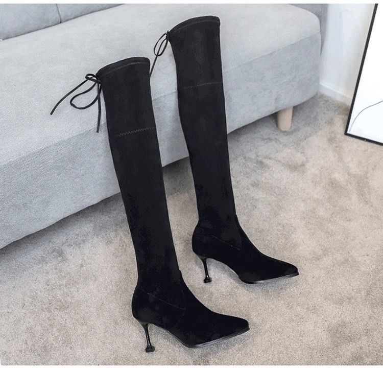 검은 무릎 위 부츠 여성용 스틸레토 힐 뾰족한 하이힐 2024 가을 및 겨울 새로운 사이버 축하 얇은 다리 하이 부츠스토어 가기