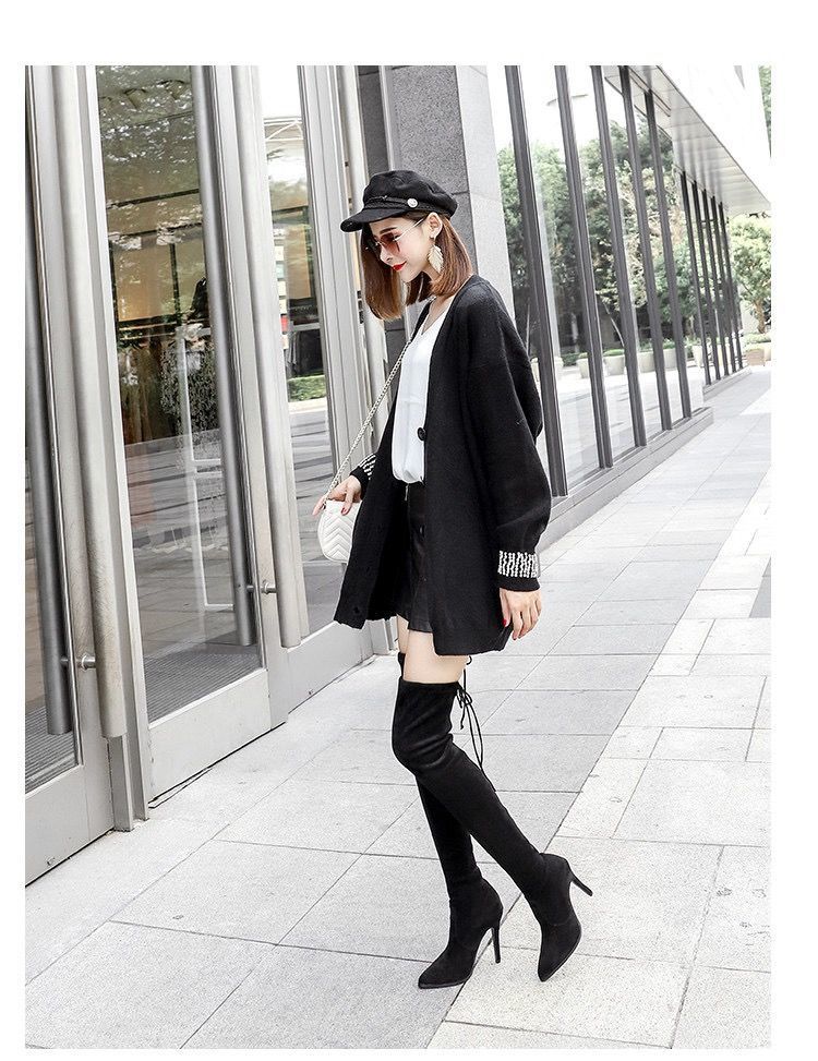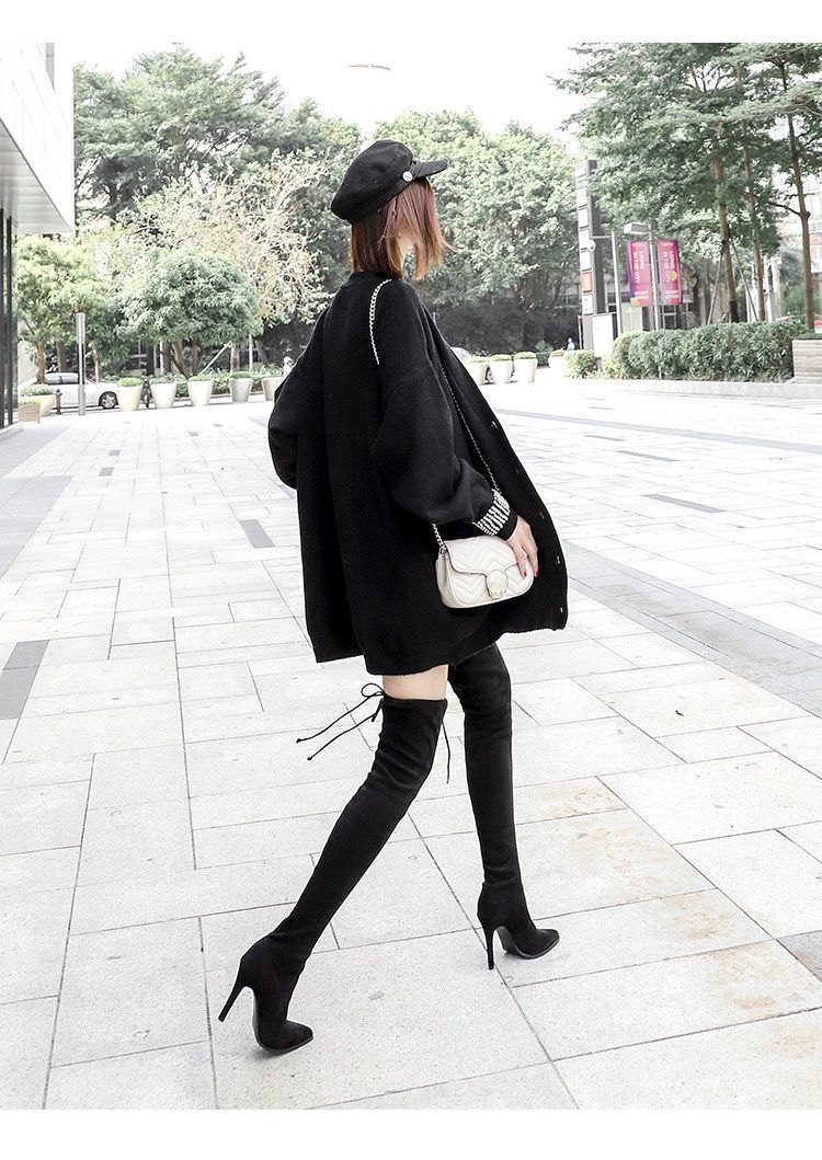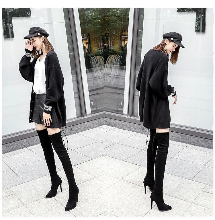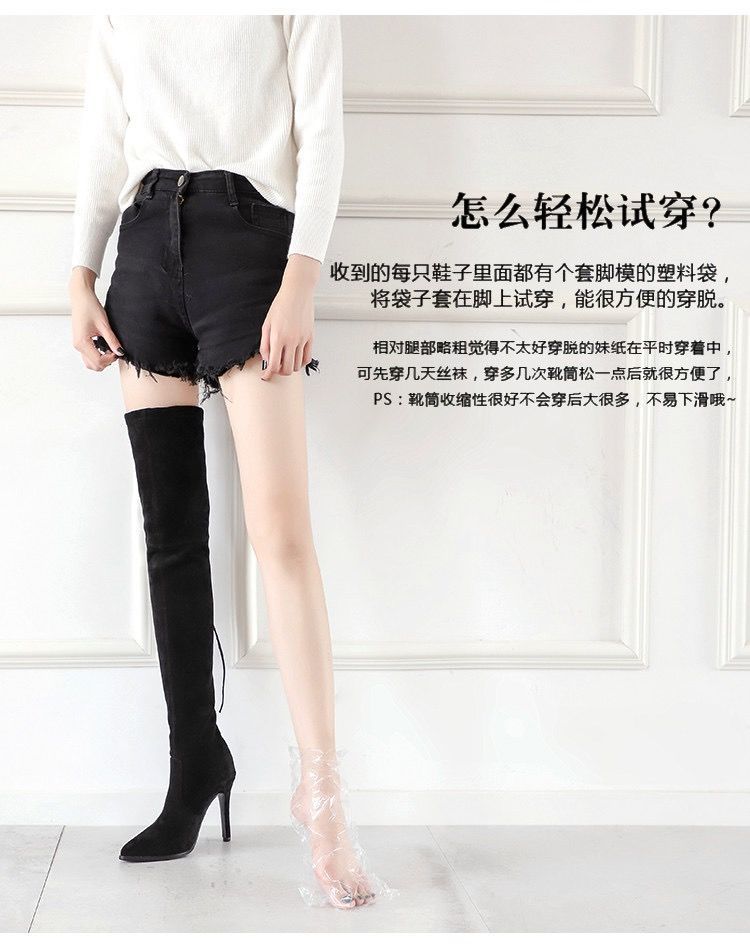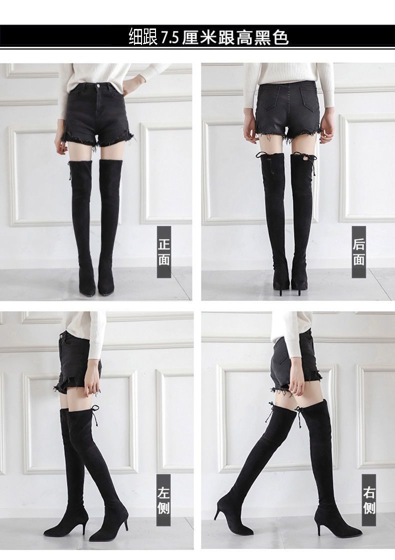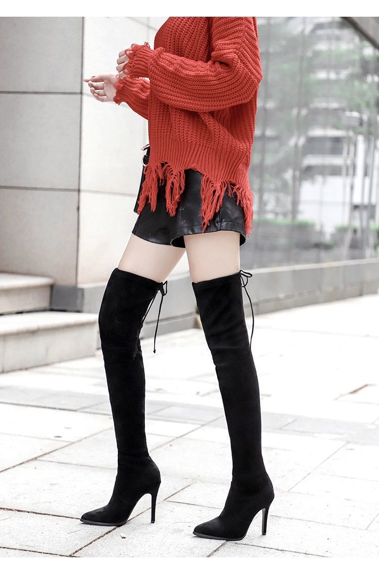 검은 무릎 위 부츠 여성용 스틸레토 힐 뾰족한 하이힐 2024 가을 및 겨울 새로운 사이버 축하 얇은 다리 하이 부츠스토어 가기