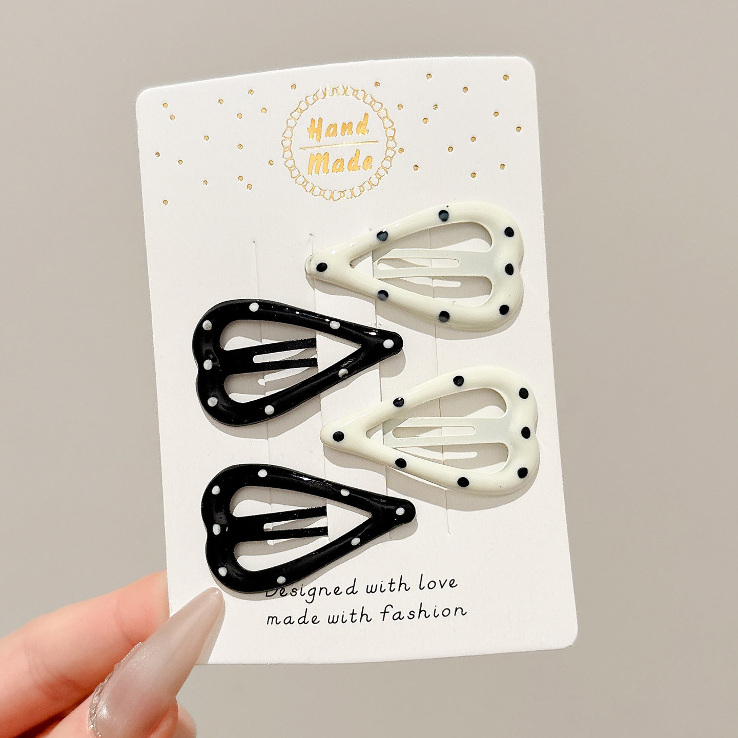 • 4#흑백 도트 하트 - 3.5cm