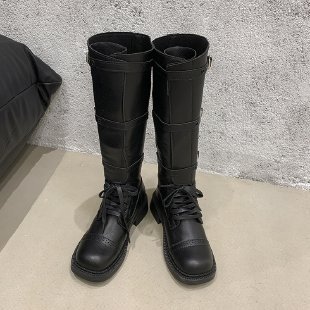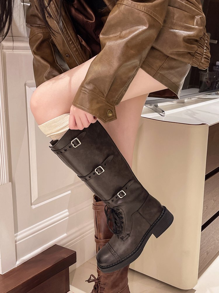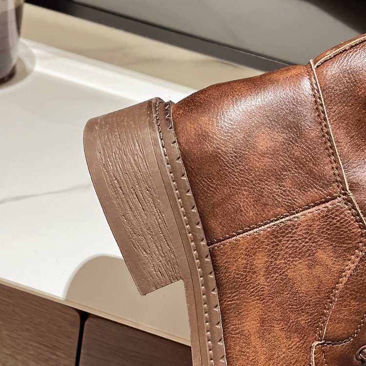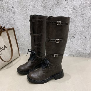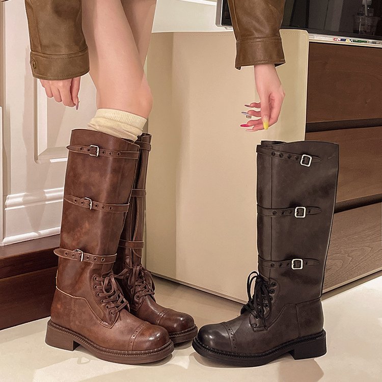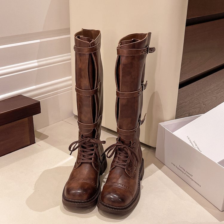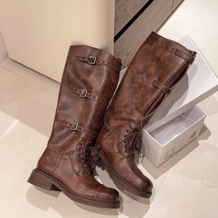 2024 년 가을 새로운 빈티지 고민 영국 마틴 부츠 스퀘어 토 레이스 업 하이 부츠 여성용 웨스턴 데저트 카우보이 부츠스토어 가기