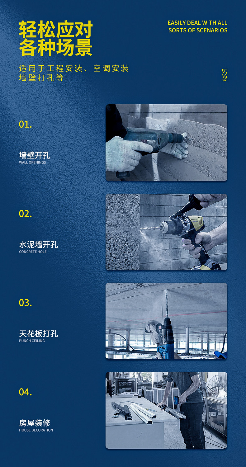 • 전기 해머 전기 드릴 더스트 커버(파란색) 1개 + 오버로드 드릴 6+8+10mm
