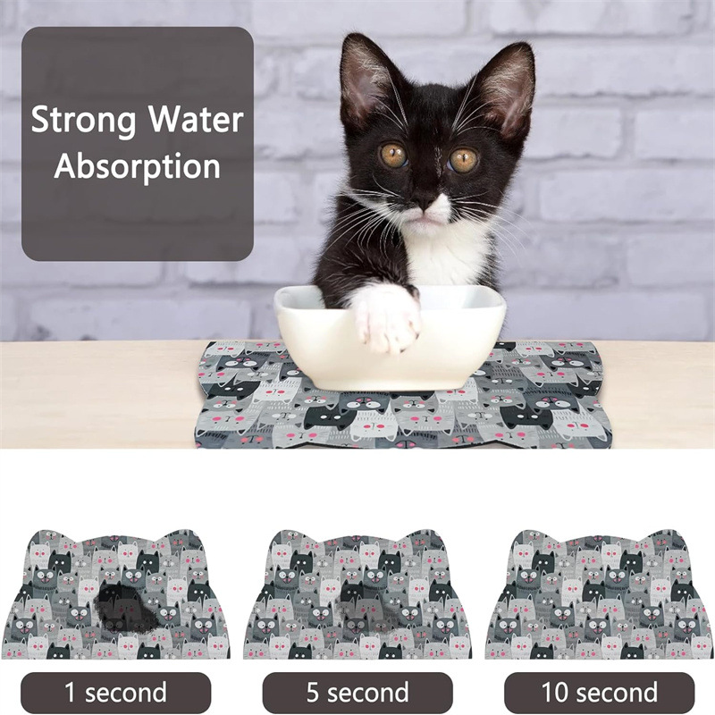 국경 간 만화 애완 동물 규조 진흙 매트 고양이와 개 먹이 매트 안티 오버플로 방수 청소하기 쉬운 애완 동물 흡수성 빠른 건조 매트스토어 가기