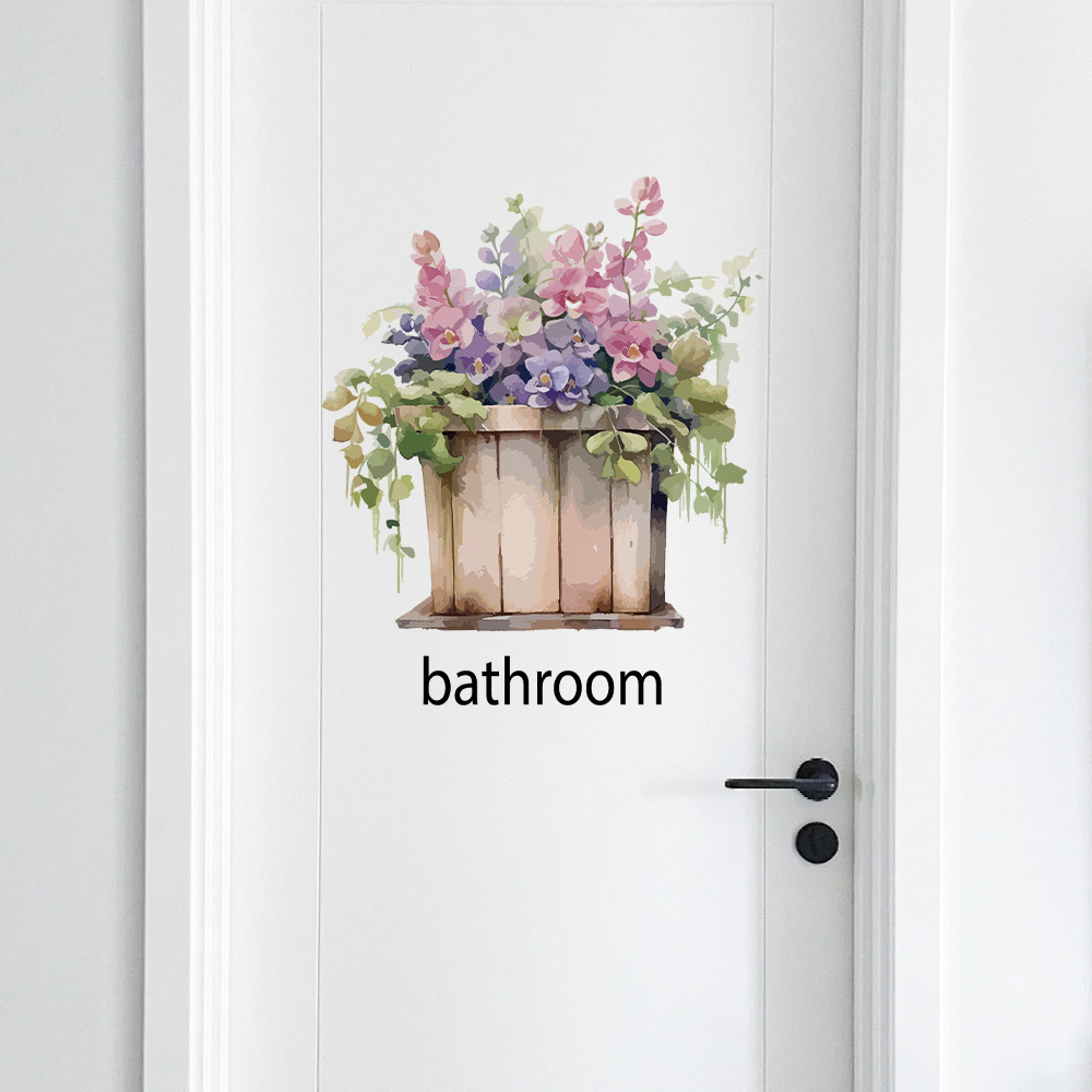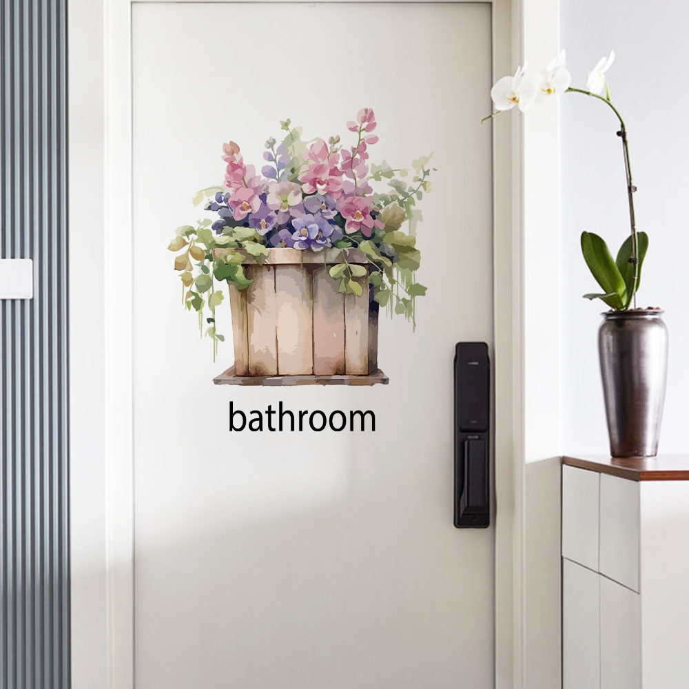 Yiyao DD23158 분위기 녹색 식물 편지 문 스티커 거실 침실 문 집 장식 자체 접착 스티커스토어 가기