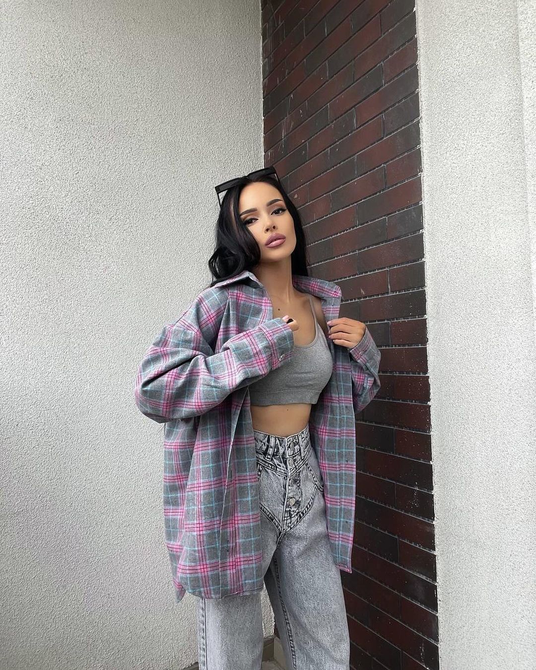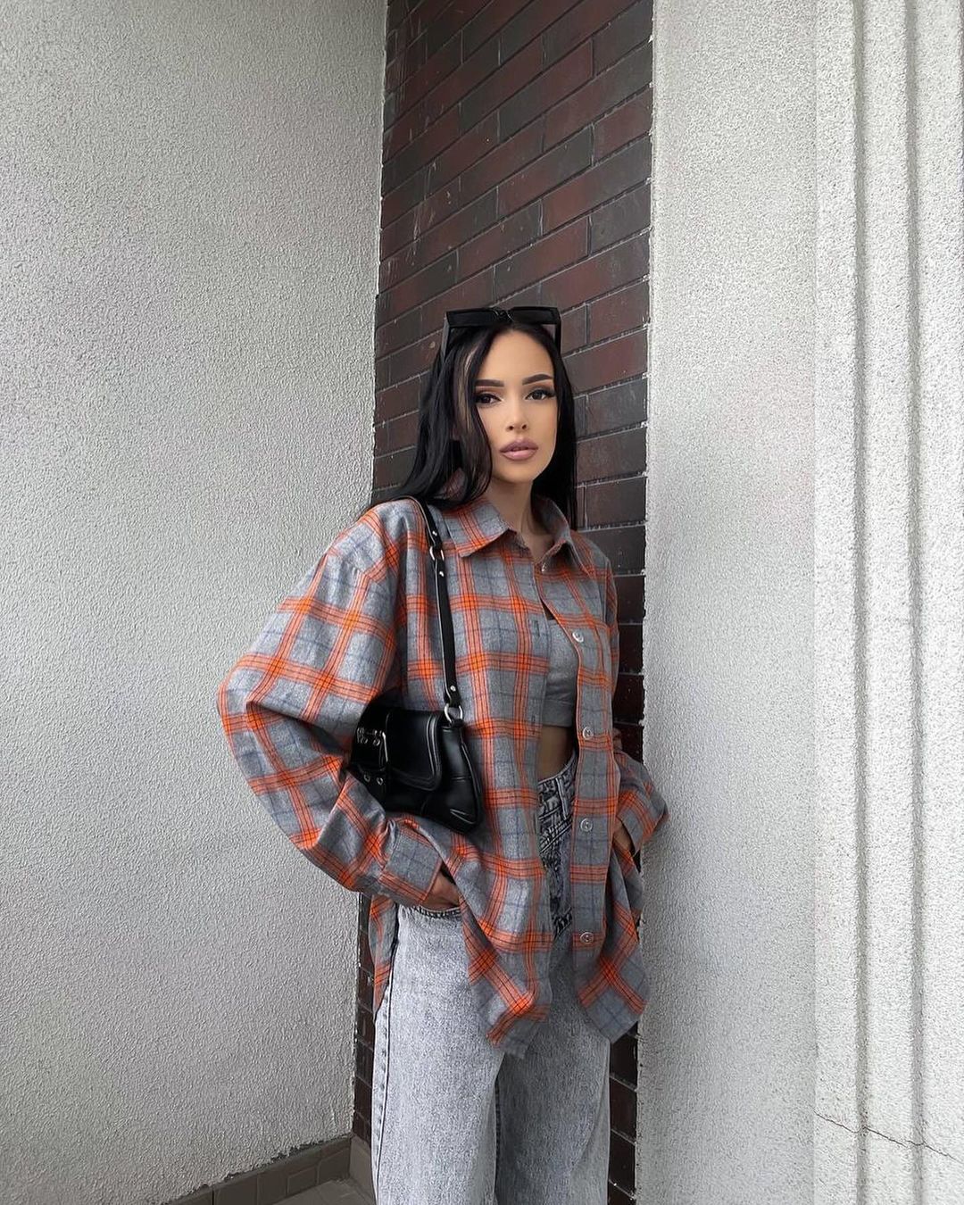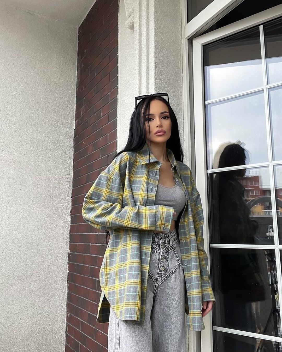 유럽과 미국의 아마존 국경 2024 빈티지 올 매치 옷깃 느슨한 체크 무늬 긴팔 셔츠스토어 가기