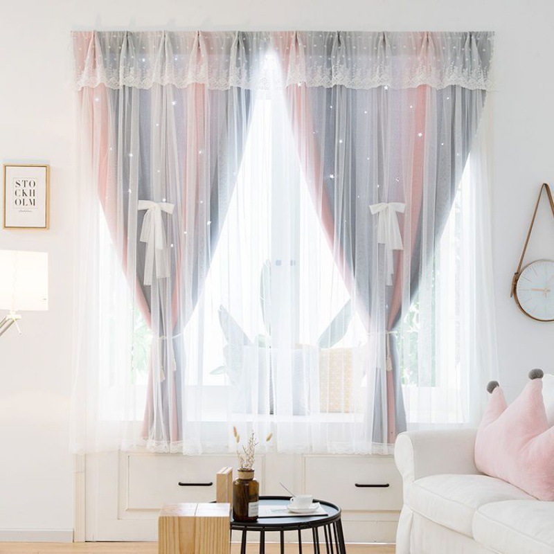 • 그레이 핑크 그라데이션 [중공 별] [커튼 헤드 포함]