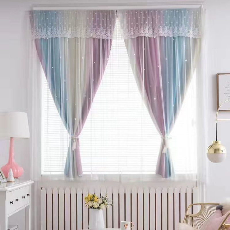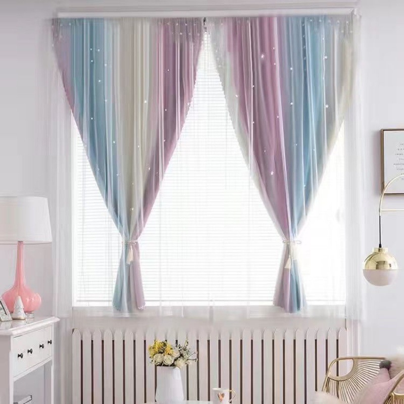• 파란색과 보라색 그라데이션 [중공 별] [커튼 헤드 포함]