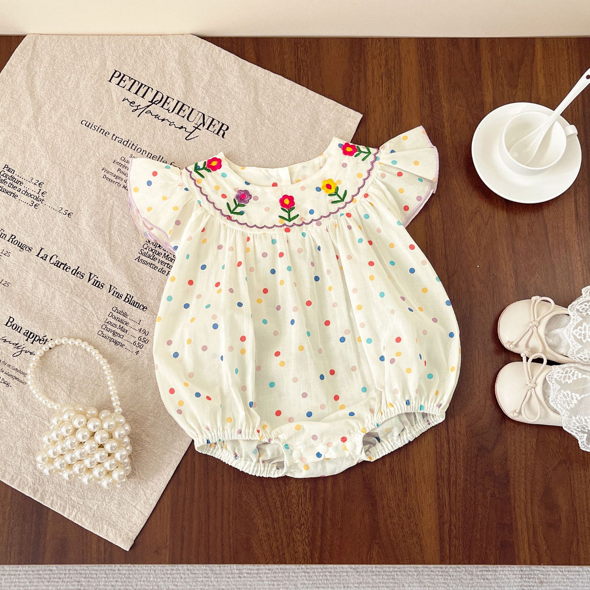 어린이 의류 2024 빈티지 꽃 아기 해그 가운 여름 코튼 레이스 플라잉 슬리브 귀여운 아기 소녀의 유니폼 옷 등반 옷스토어 가기