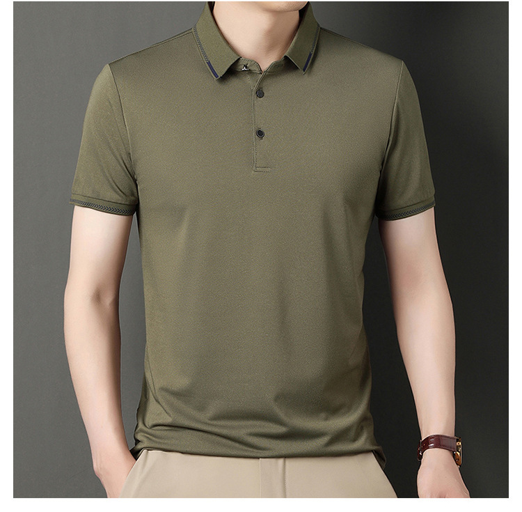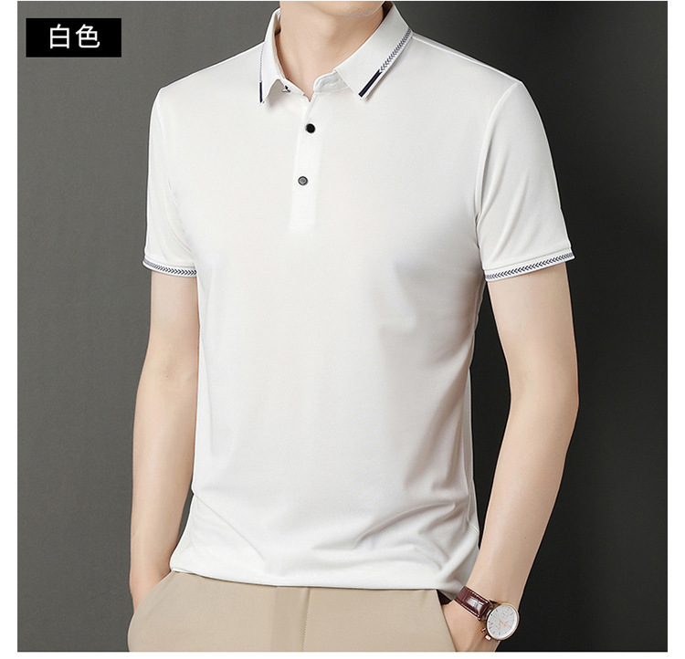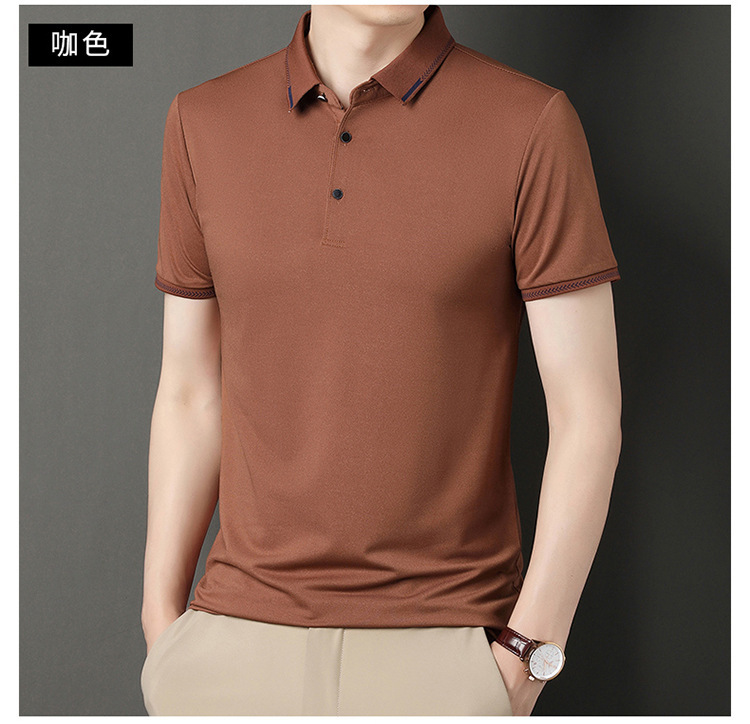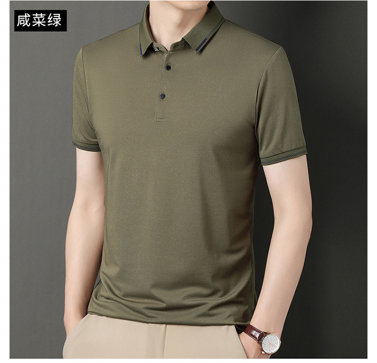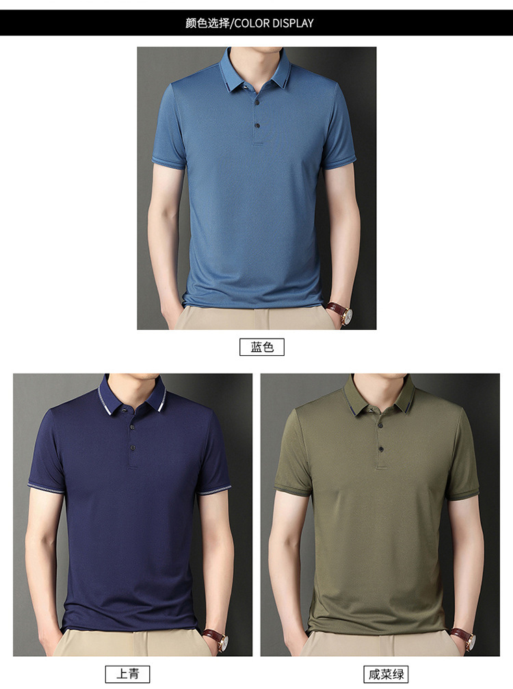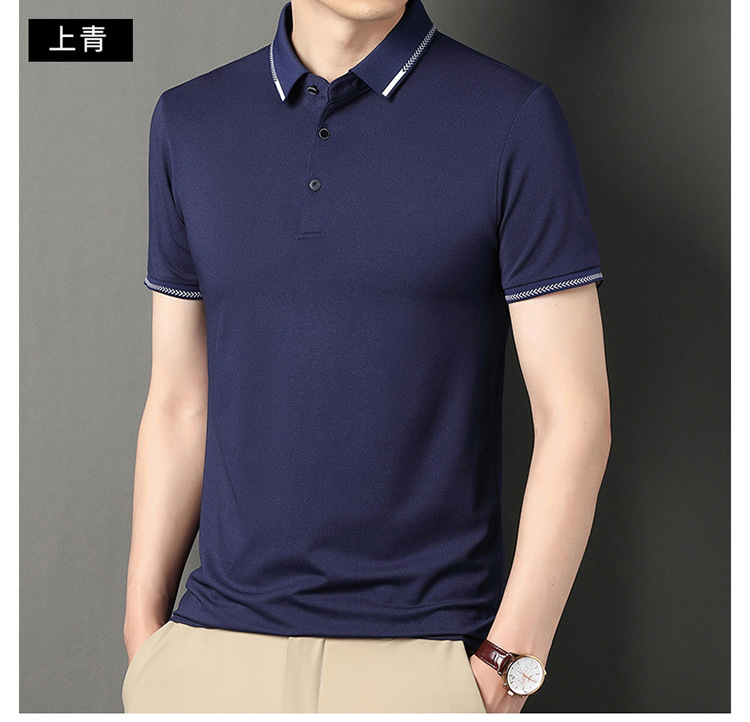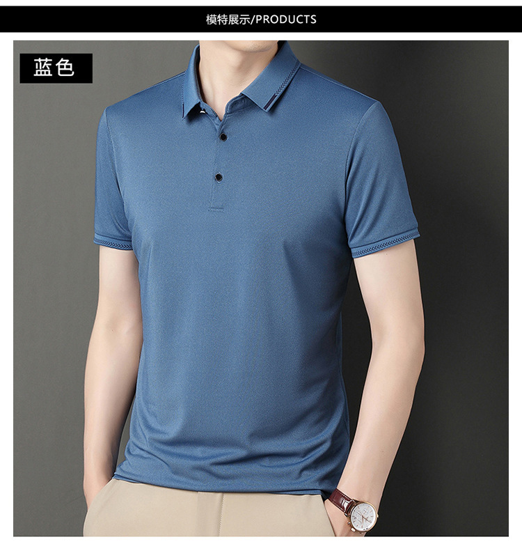 高端桑蚕丝男士POLO衫男短袖翻领2023夏季半袖t恤商务休闲爸爸装
