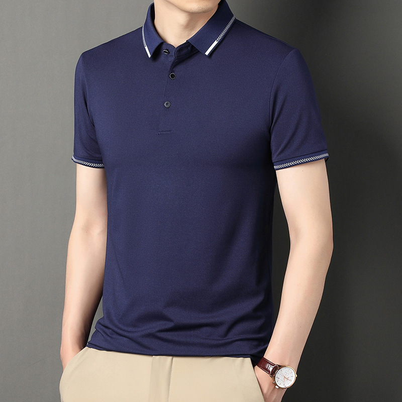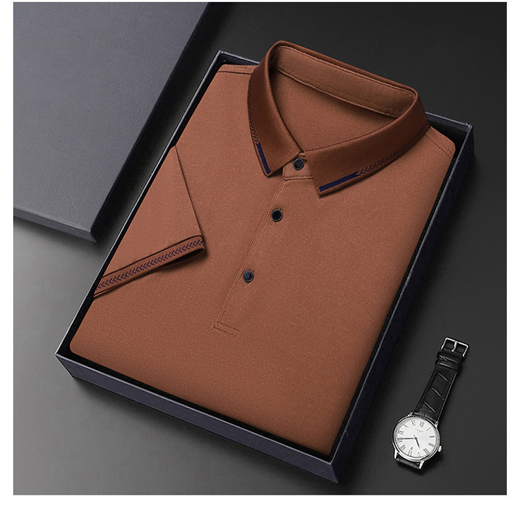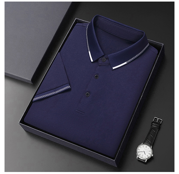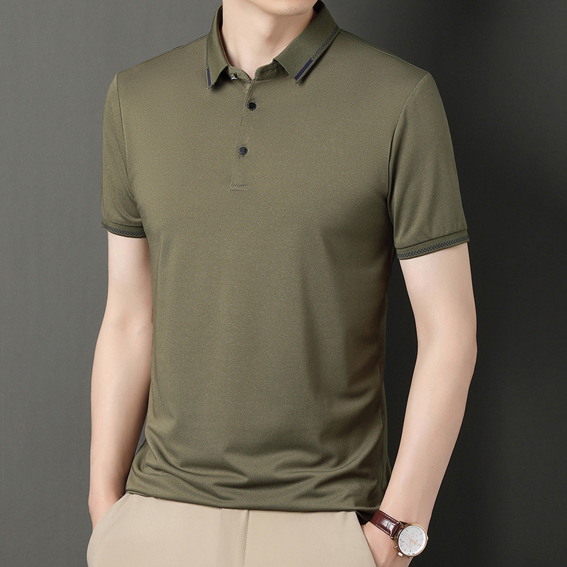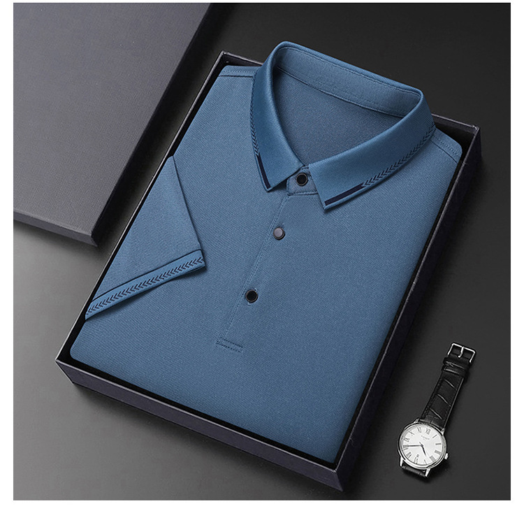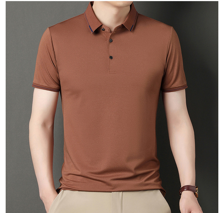 高端桑蚕丝男士POLO衫男短袖翻领2023夏季半袖t恤商务休闲爸爸装