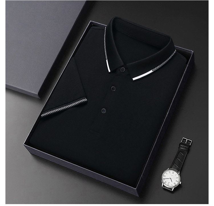 고급 뽕나무 실크 남성용 폴로 셔츠 남자 반팔 랩 2023 여름 반소매 티셔츠 비즈니스 캐주얼 아빠 의류스토어 가기