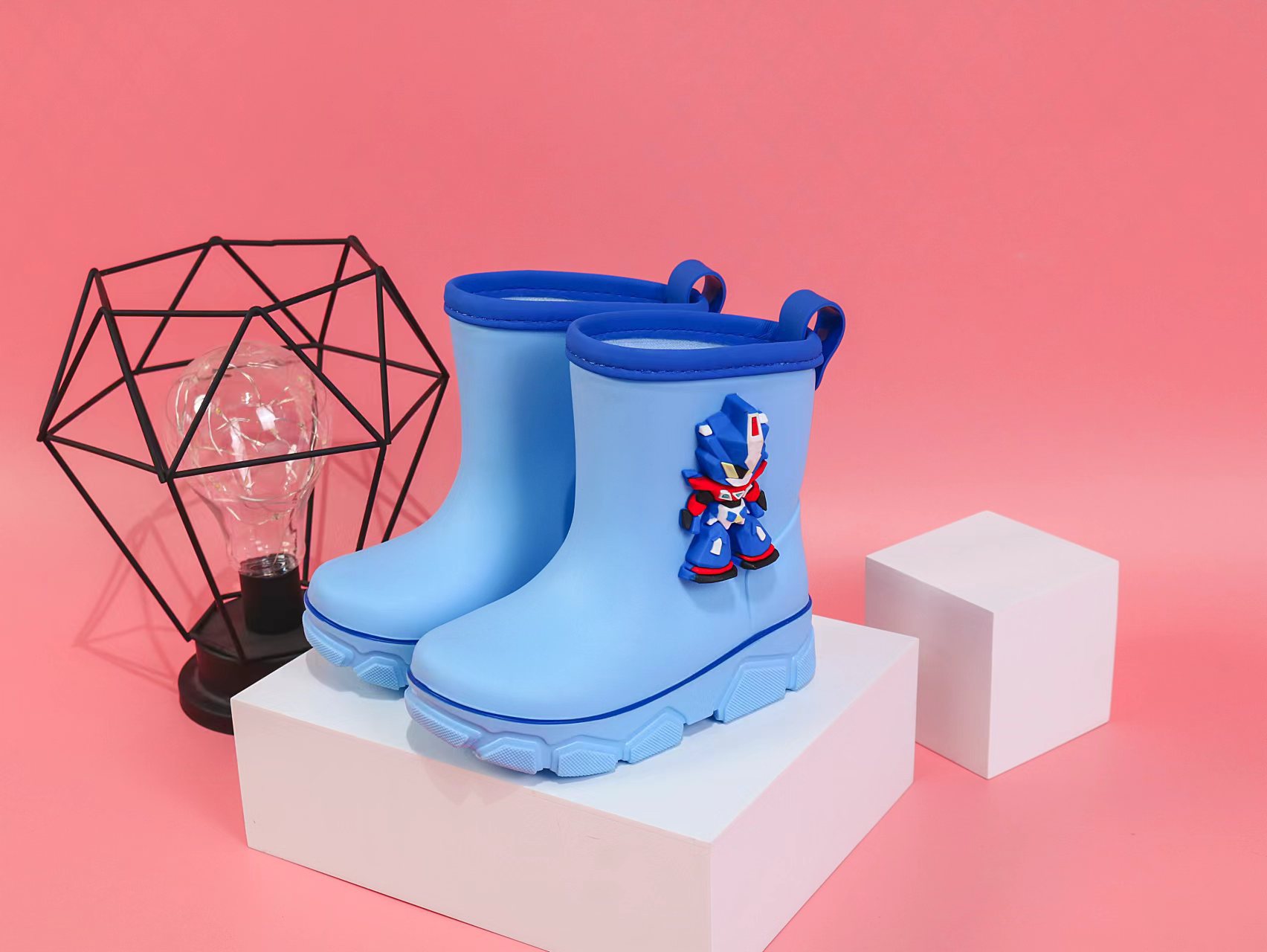 새로운 어린이 장화 소년 장화 장화 비 시즌 나들이 미끄럼 방지 두꺼운 바닥 물 신발 소년 만화 고무 신발 도매