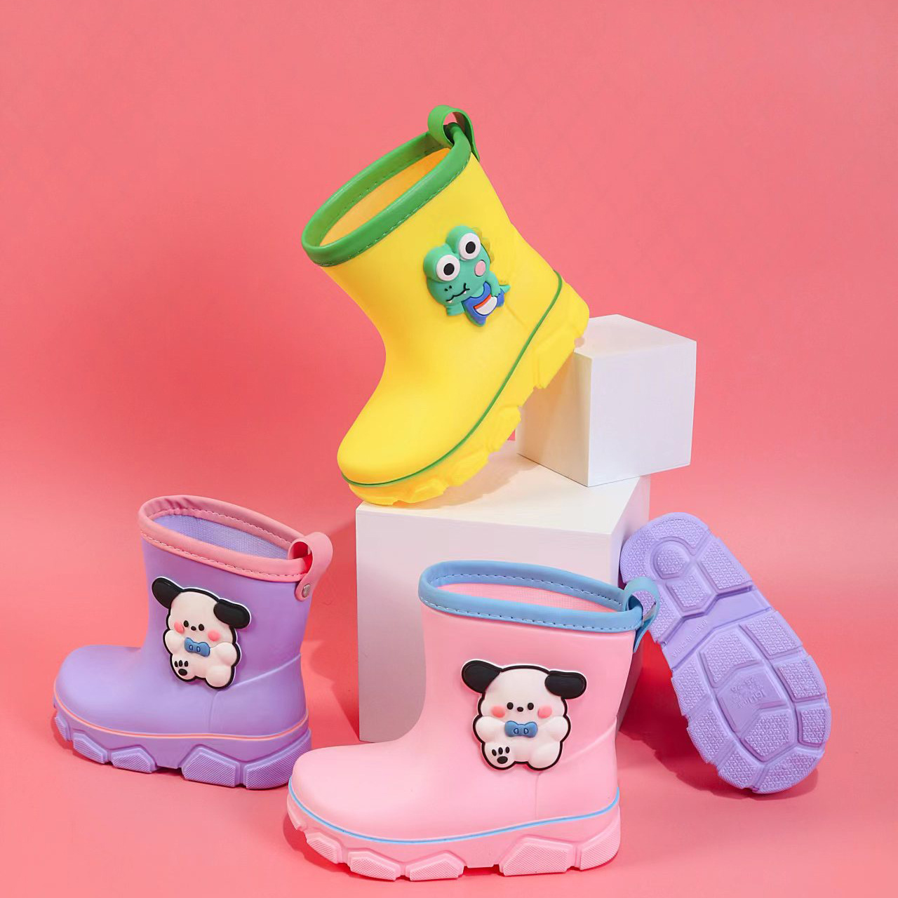새로운 어린이 장화 소년 장화 장화 비 시즌 나들이 미끄럼 방지 두꺼운 바닥 물 신발 소년 만화 고무 신발 도매스토어 가기