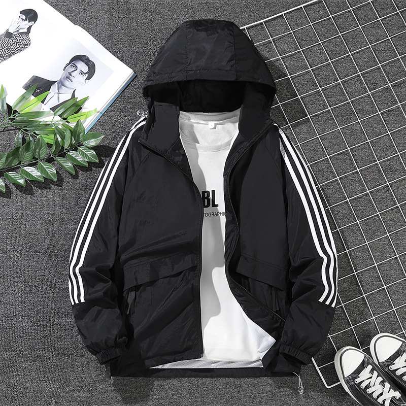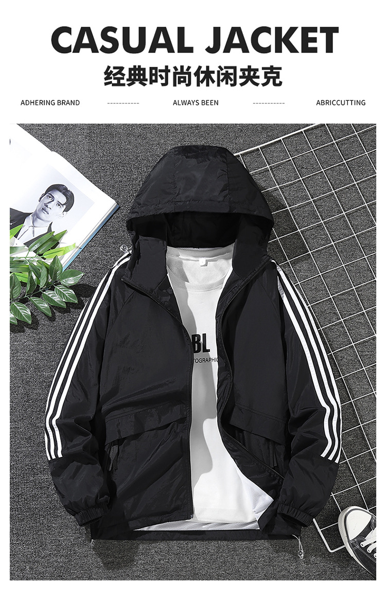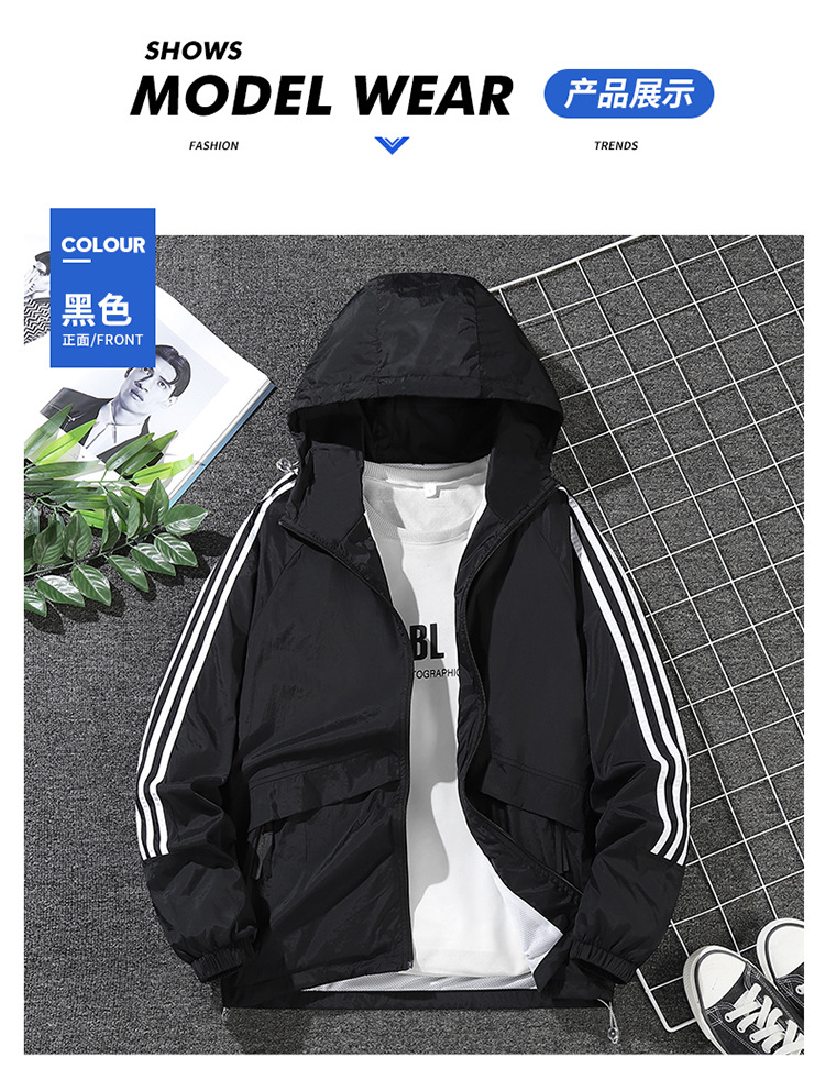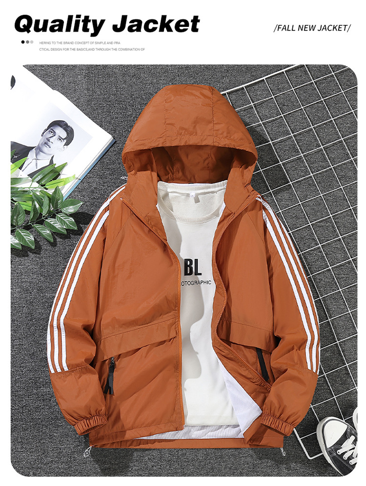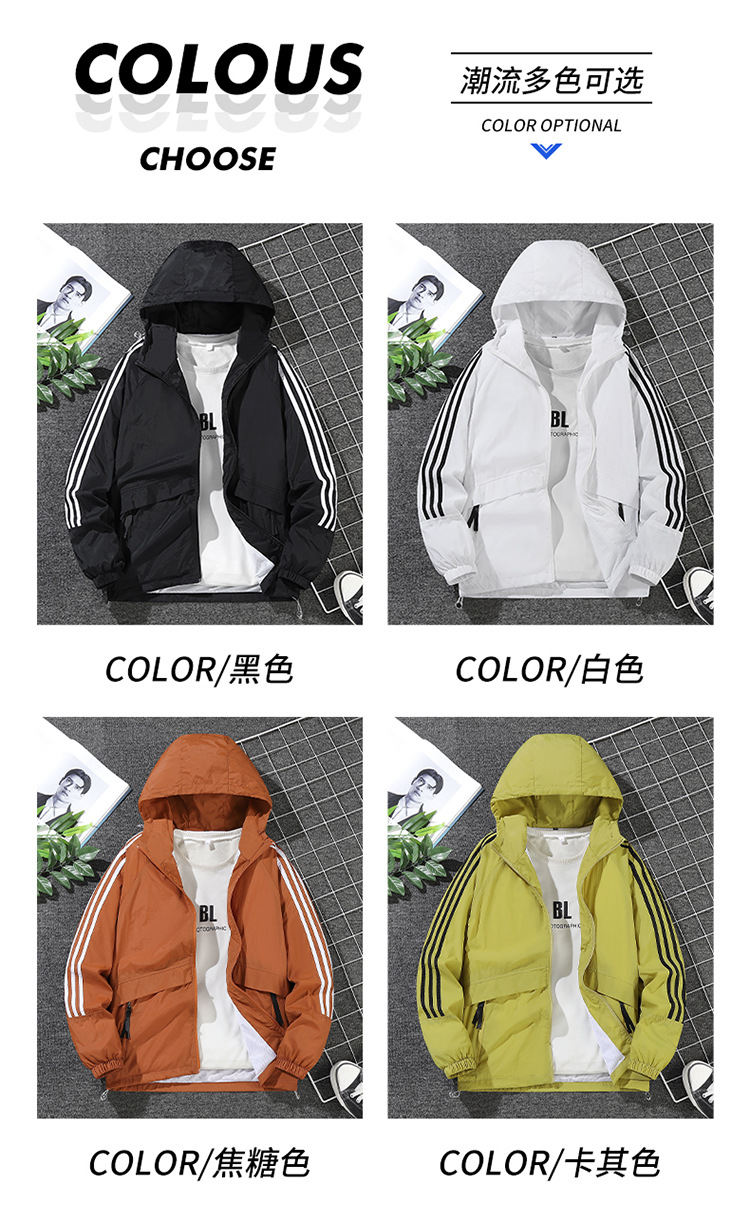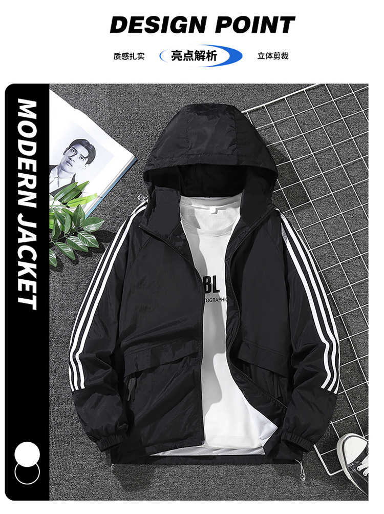 남녀공용 아메리칸 스타일 삼선 자켓, 봄 가을 방풍 얇은 자켓, 남성용 후드 아웃도어 윈드브레이커스토어 가기