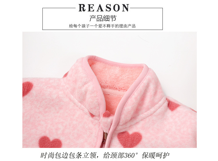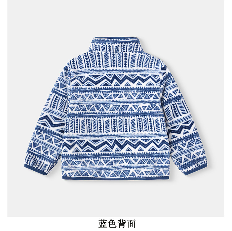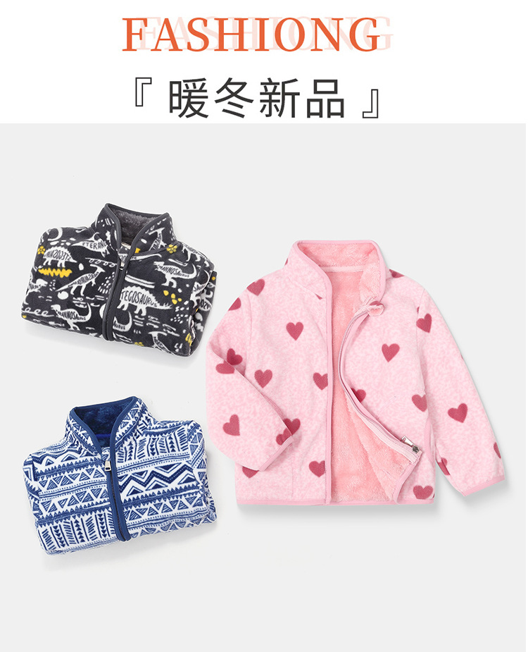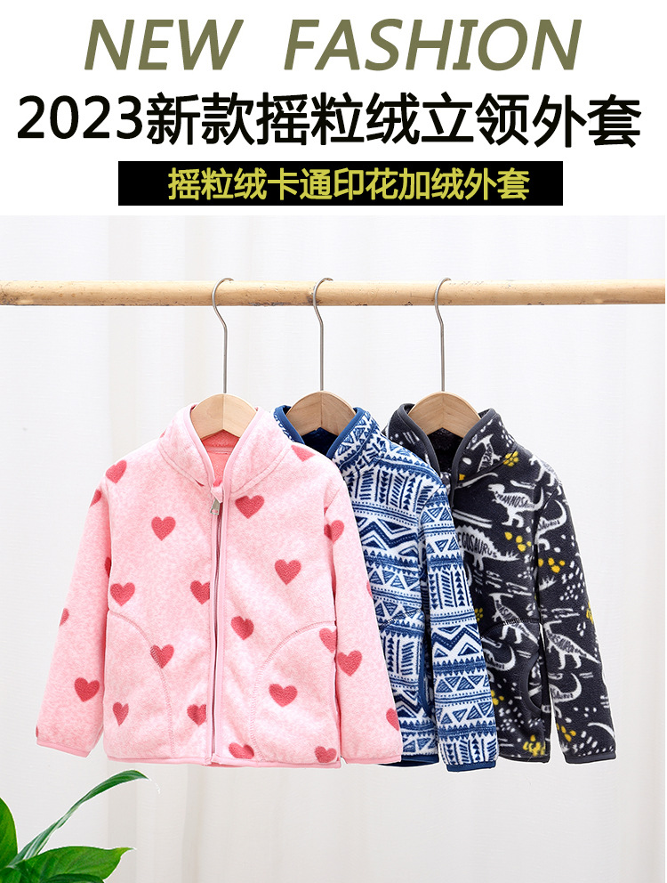 어린이 2024 가을과 겨울 폴라 플리스 프린트 따뜻한 코트 긴 소매 기모 짧은 코트 스탠드 칼라 머리카락스토어 가기