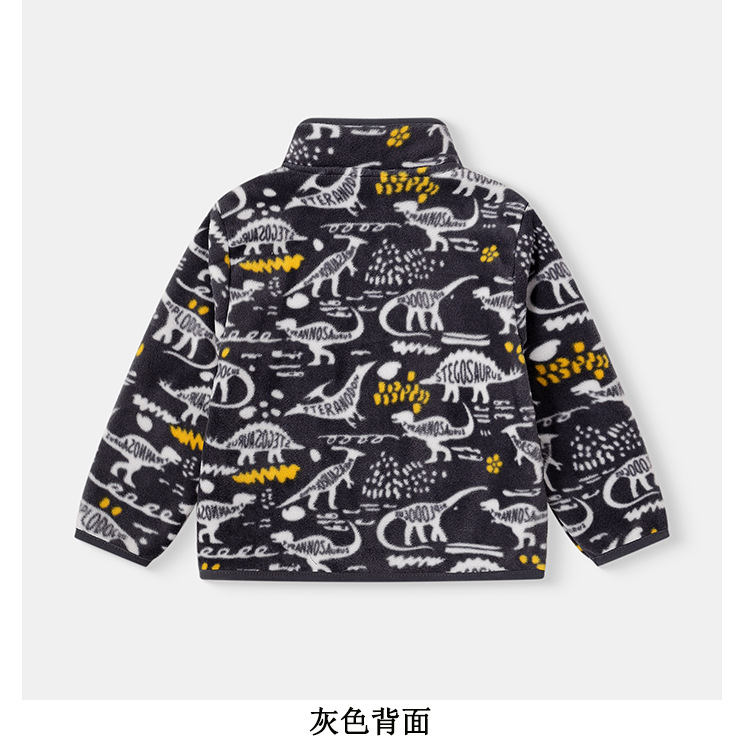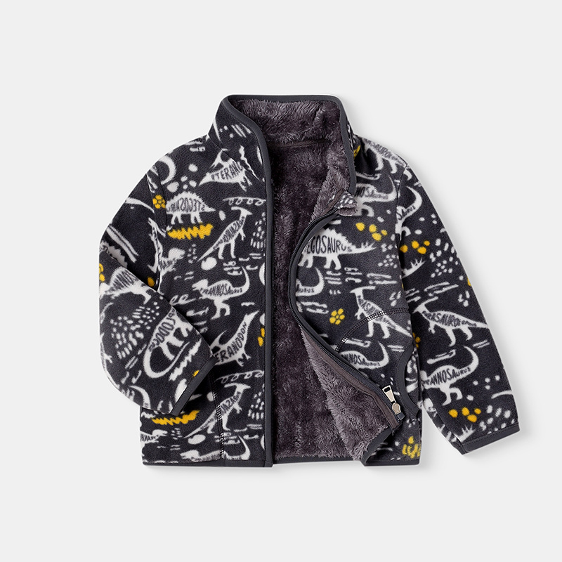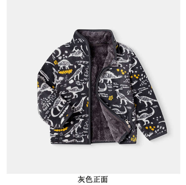 어린이 2024 가을과 겨울 폴라 플리스 프린트 따뜻한 코트 긴 소매 기모 짧은 코트 스탠드 칼라 머리카락