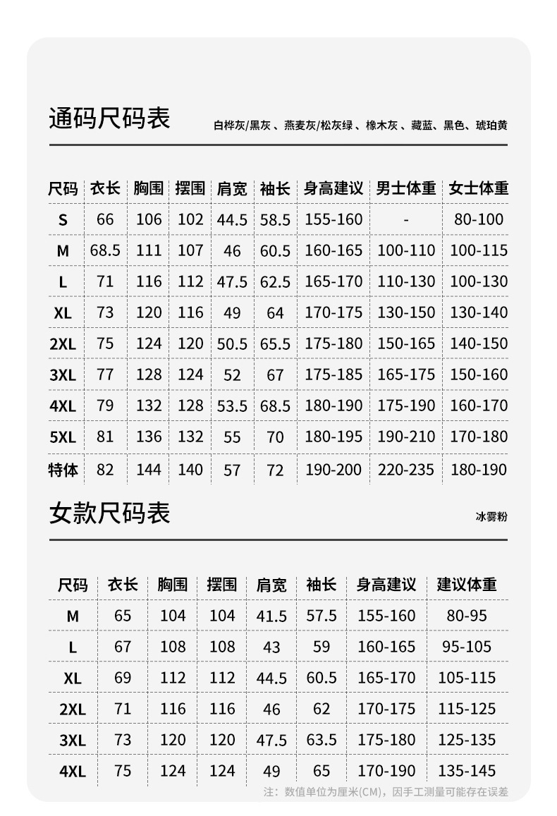 • 7XL (20 위안 추가 필요)