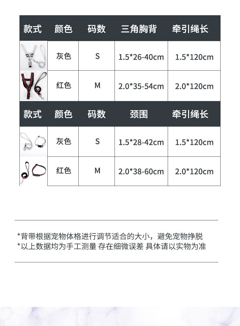 • 회색 가슴 스트랩 견인 로프 S-작은