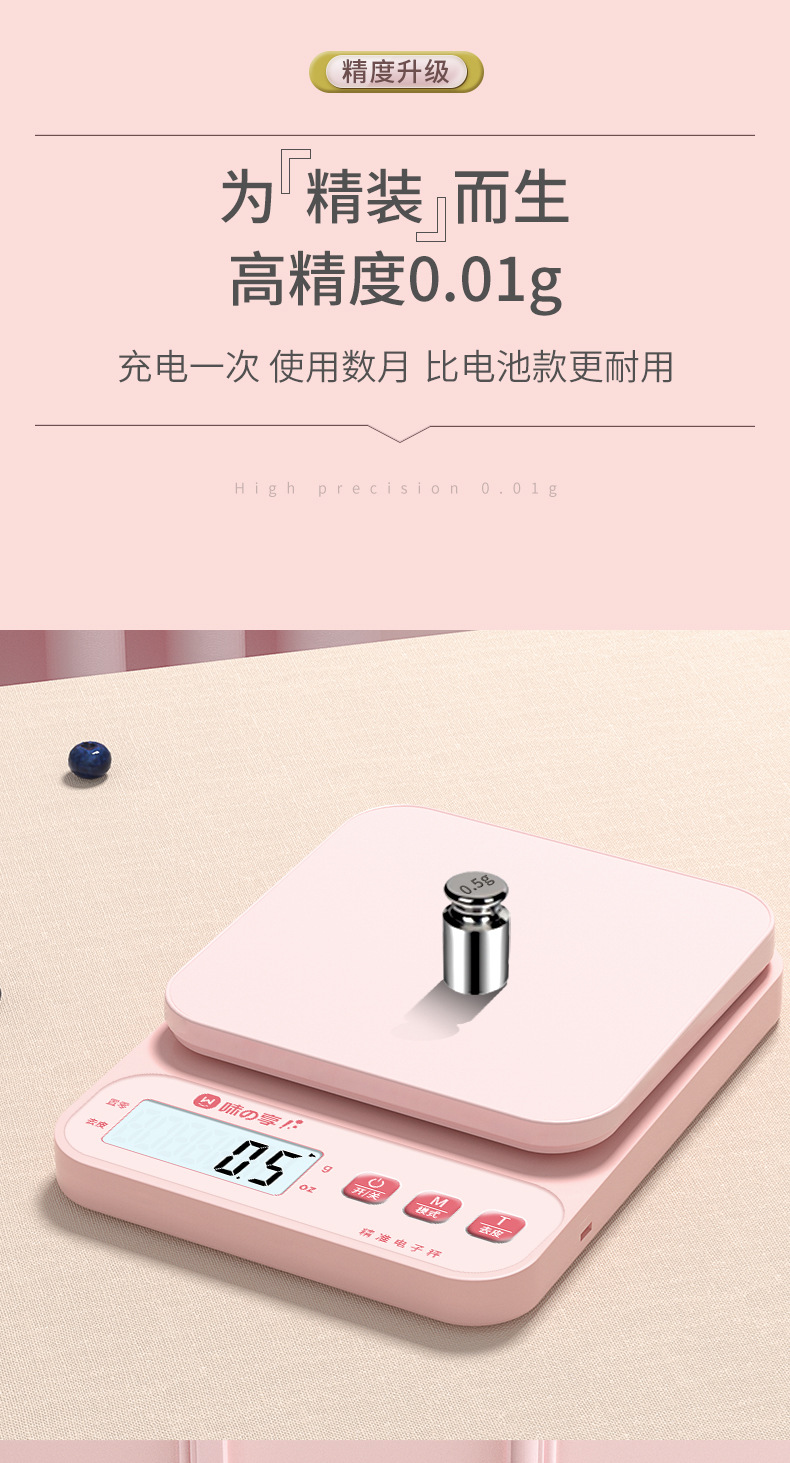• [업그레이드 및 두꺼워짐] 충전식 모델 5kg/0.1g (무료 트레이 + 4가지 주요 선물)