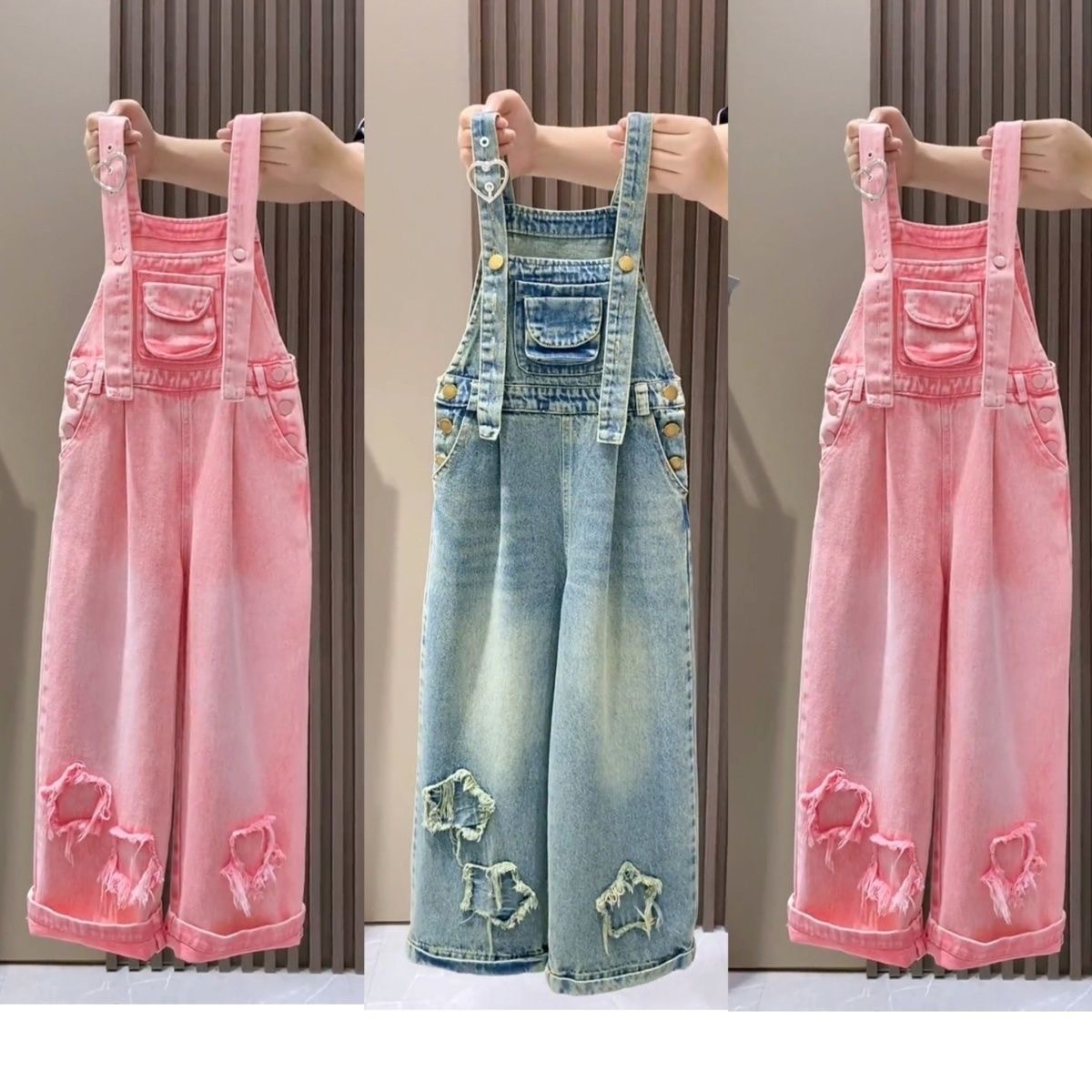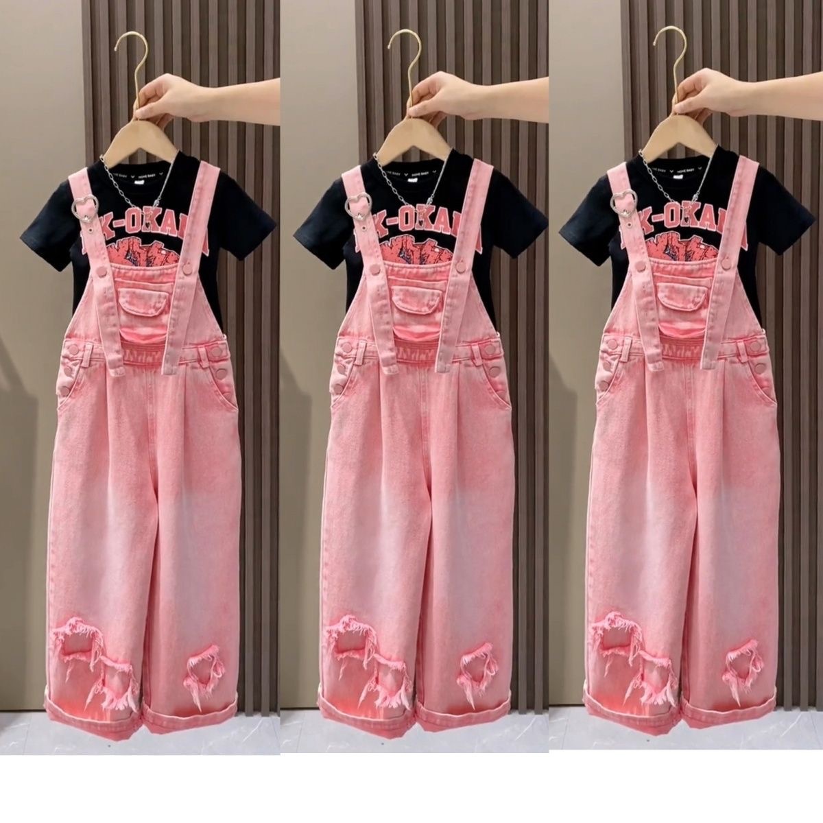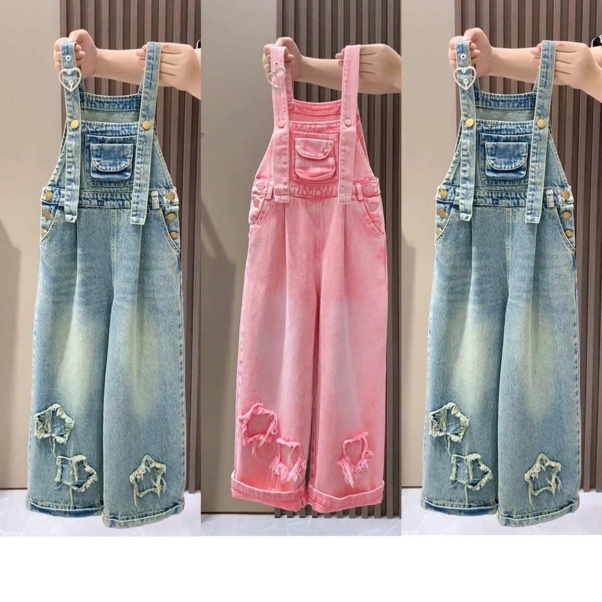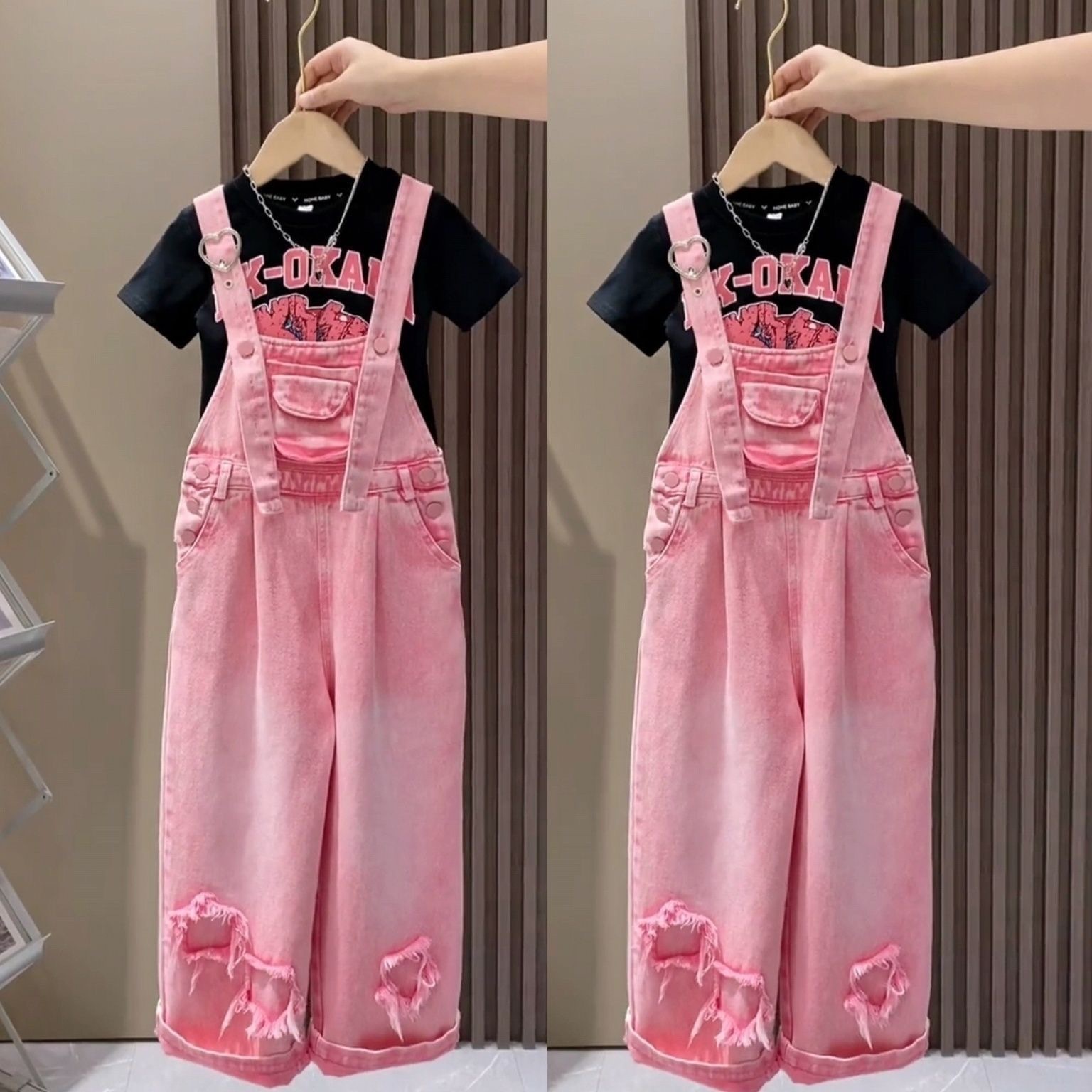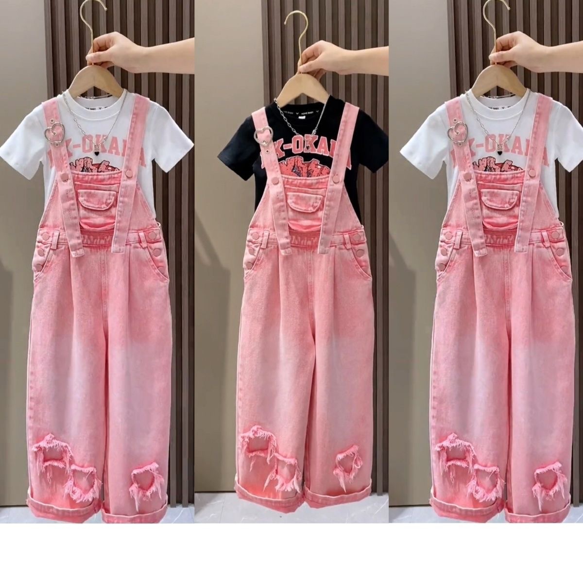 소녀 데님 스트랩 바지 세트 봄과 여름 2024 새로운 소녀 서양식 여름 유행 똥 거리 바지스토어 가기