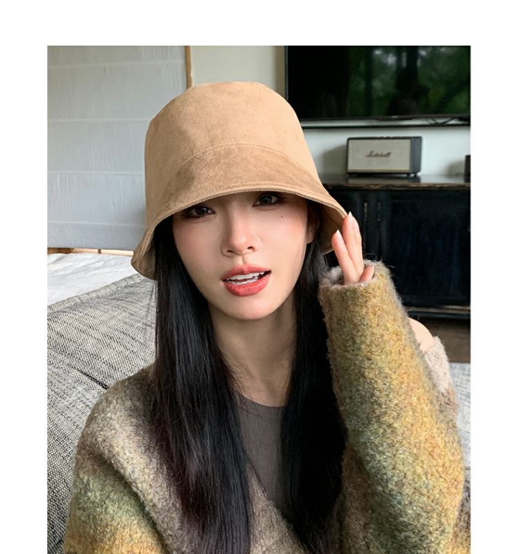 어부 모자 여자 봄과 가을 일본 올 매치 스웨이드 분지 모자 일반 얼굴 커버 버킷 모자 소외 모자 좋은 텍스트