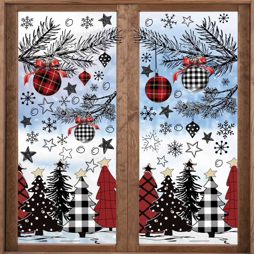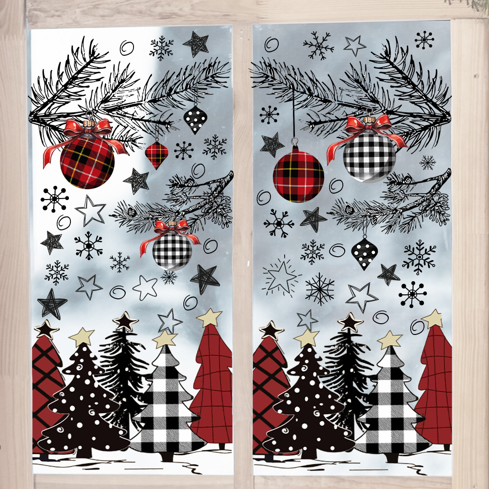 Yiyao JD2310 크리스마스 눈송이 벨 스티커 유리 스티커 거실 분위기 맛있는 무료 정전기 스티커 문 및 창