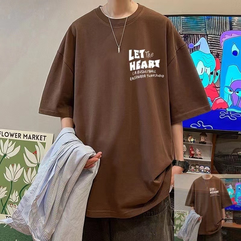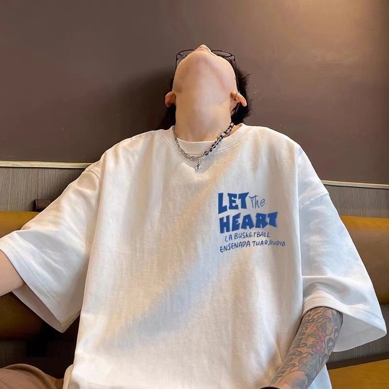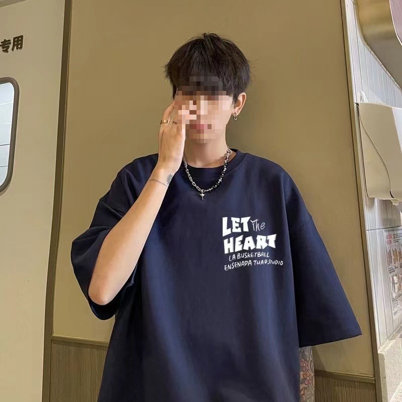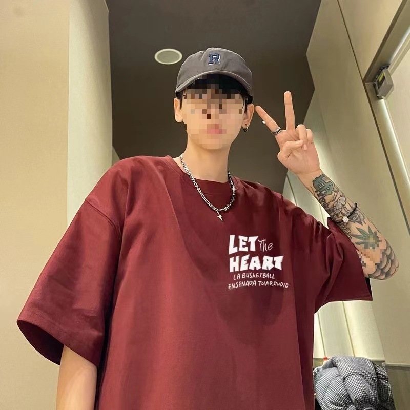퓨어 코튼 헤비 웨이트 반팔 티셔츠 남성용 트렌디 브랜드 유행 2024 새로운 루즈 올 매치 티셔츠 아메리칸 스타일 레트로베이스 셔츠스토어 가기