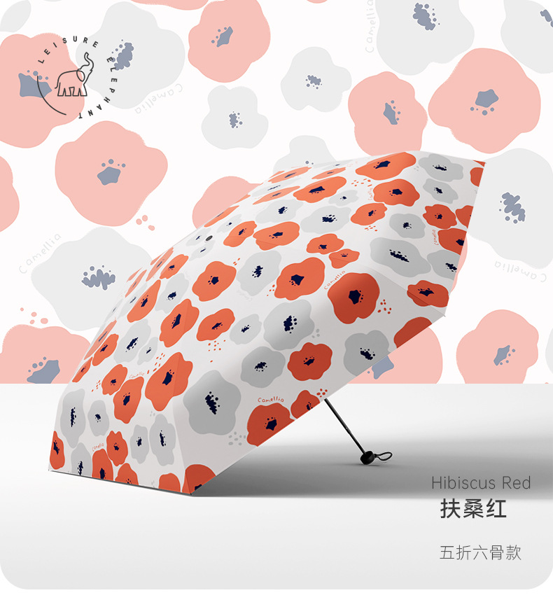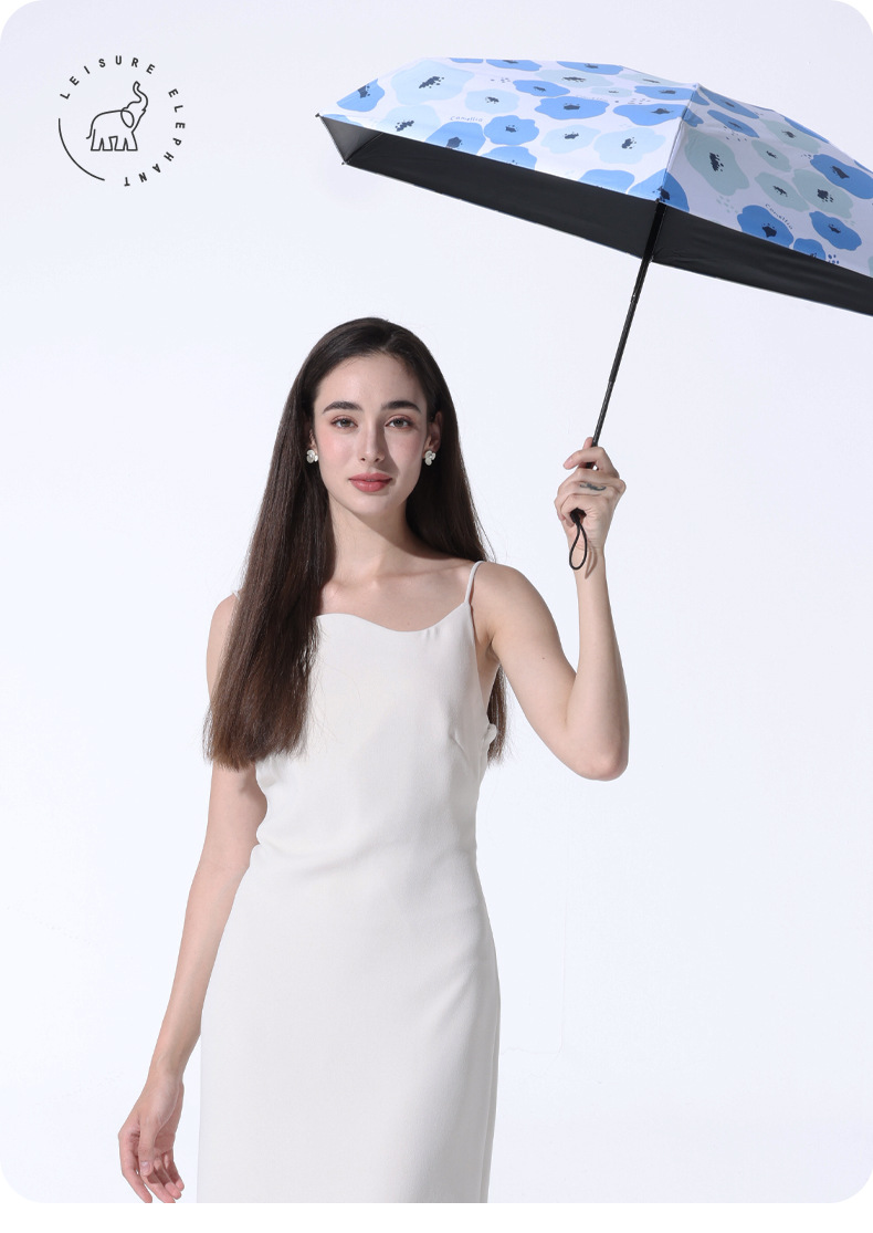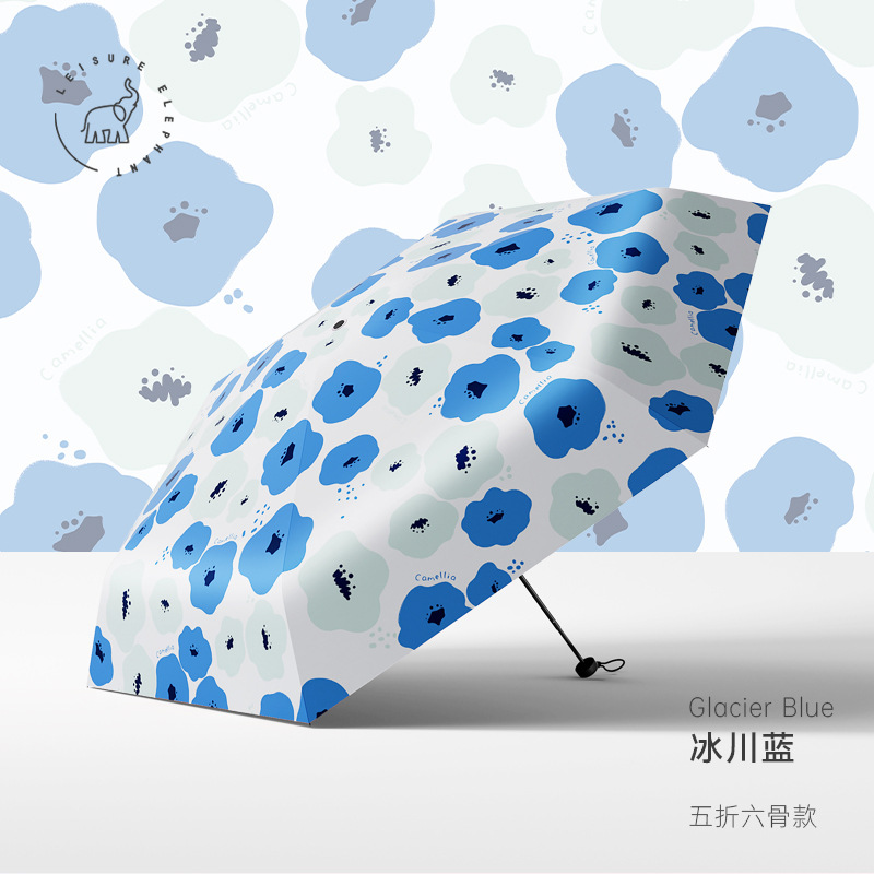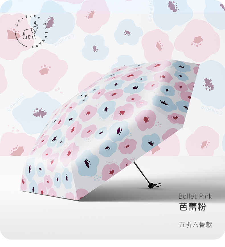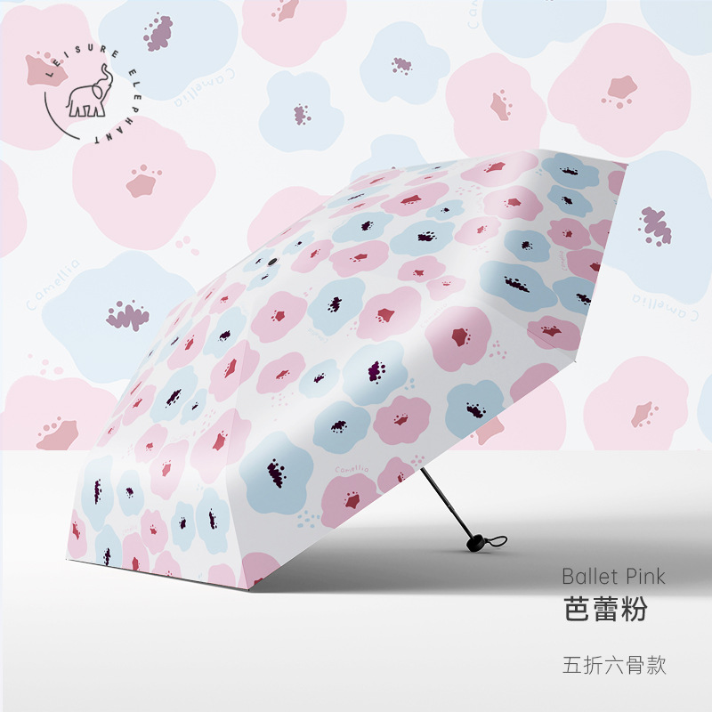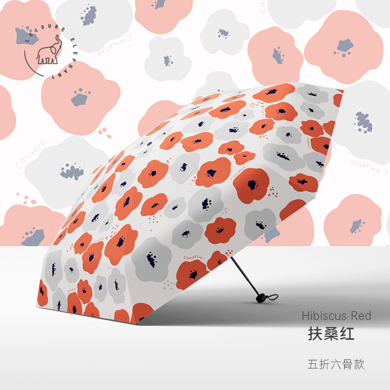 유휴 코끼리 동백 일본 스타일 신선한 스타일 50% 접이식 검은 고무 우산 휴대용 휴대용 태양 보호 및 UV 보호스토어 가기