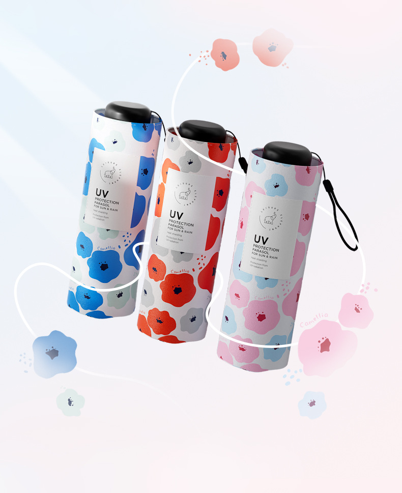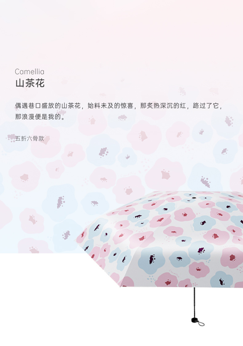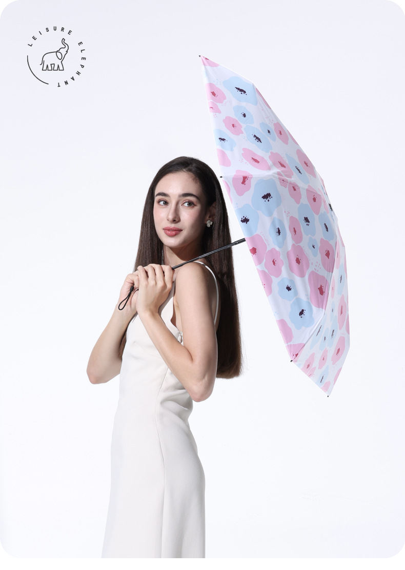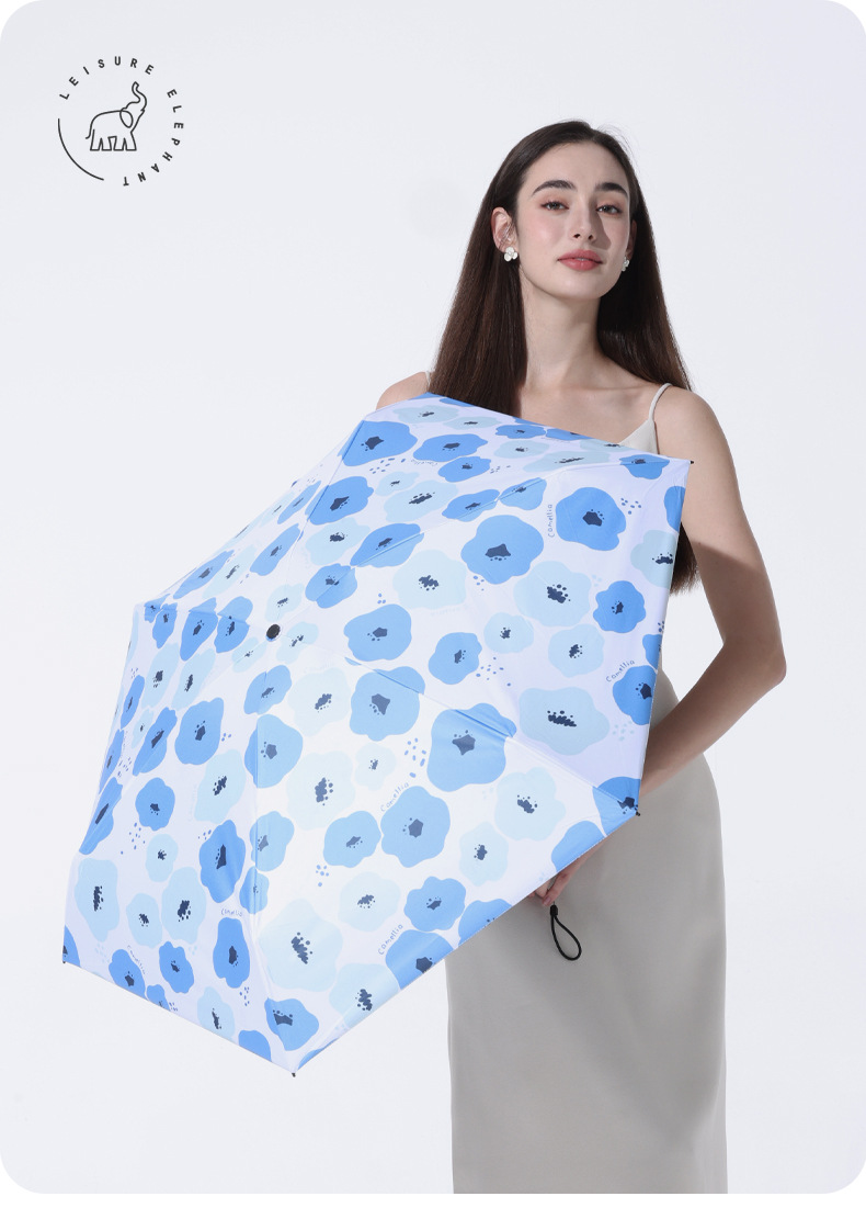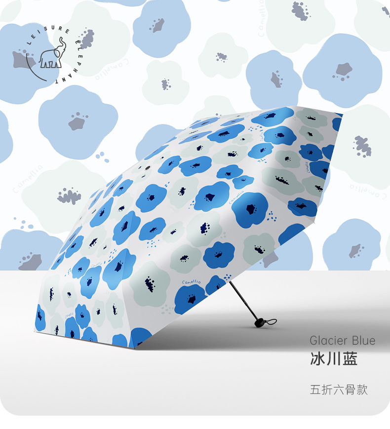 유휴 코끼리 동백 일본 스타일 신선한 스타일 50% 접이식 검은 고무 우산 휴대용 휴대용 태양 보호 및 UV 보호스토어 가기