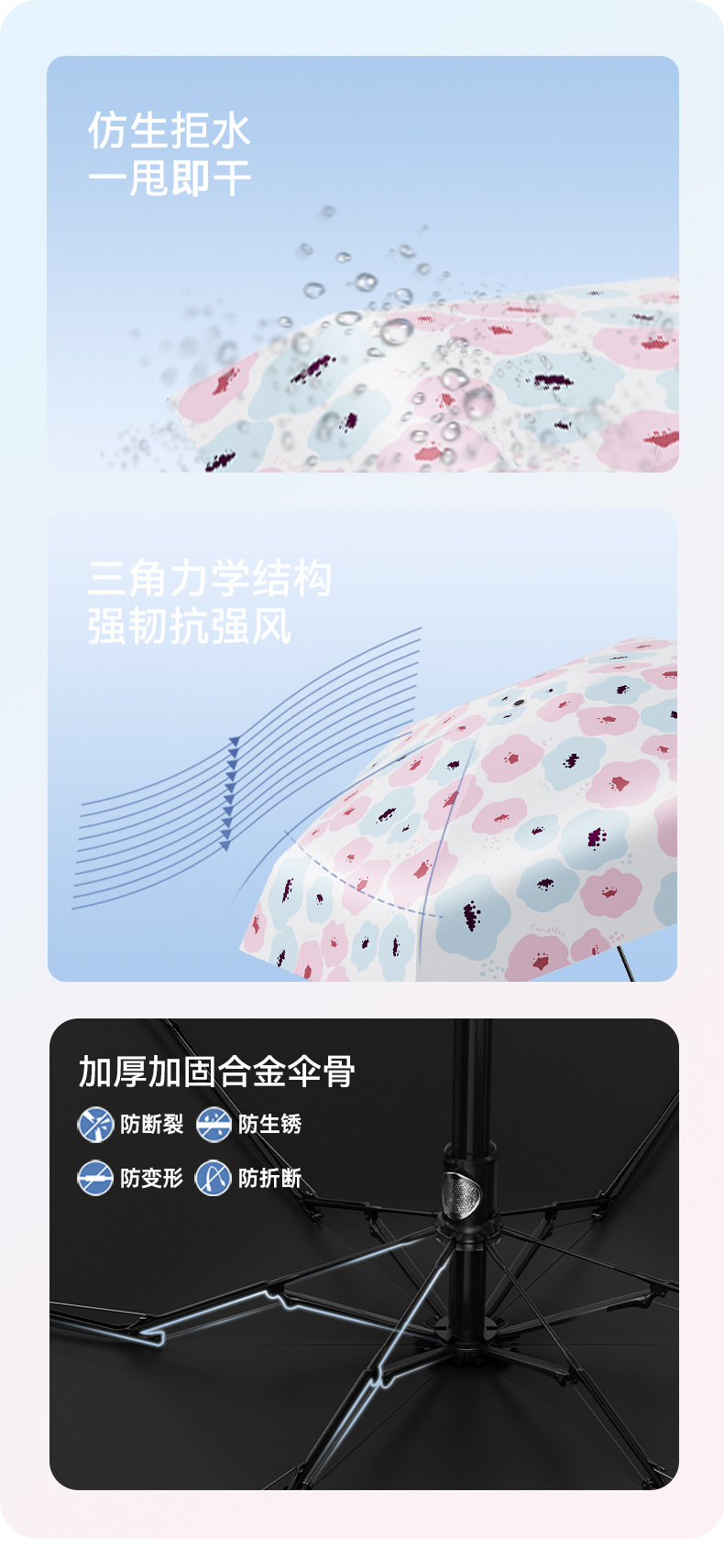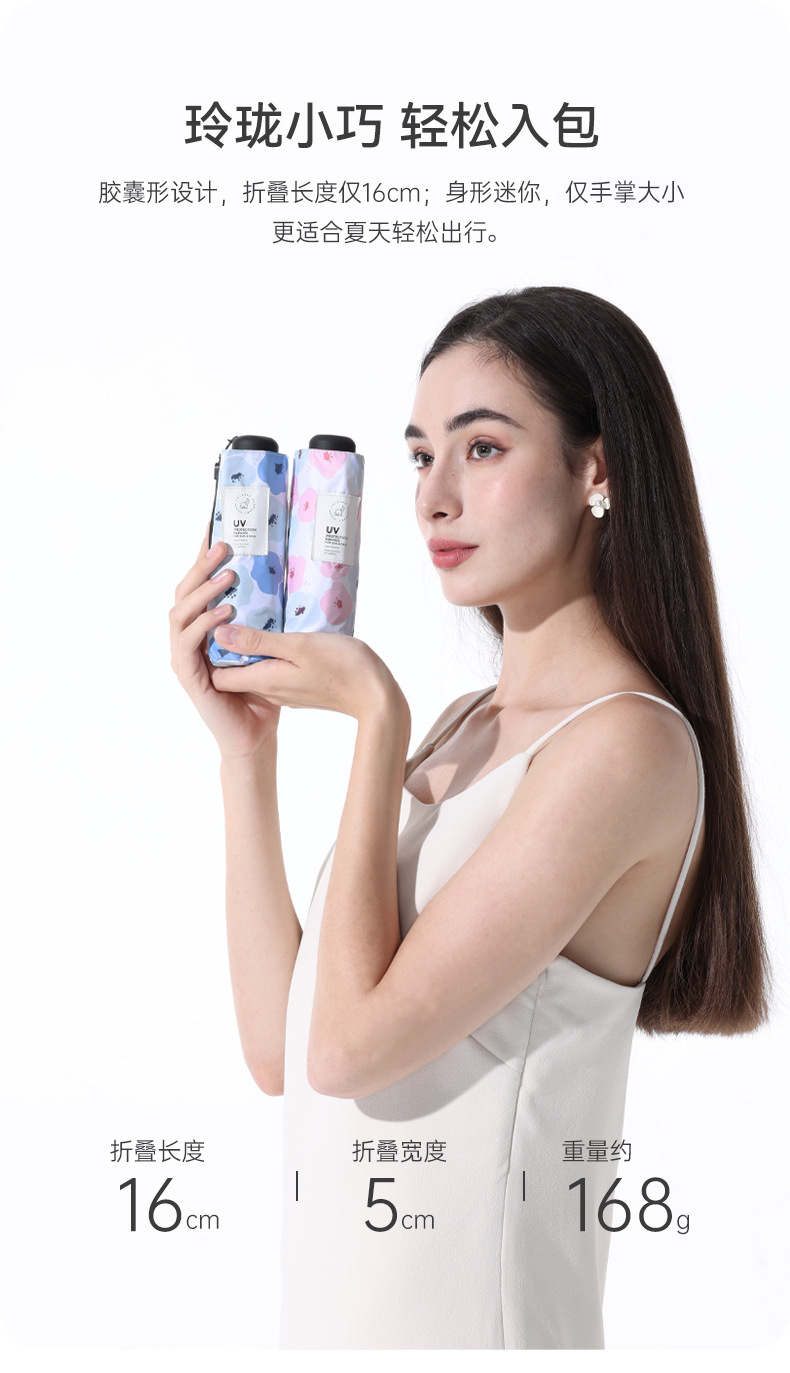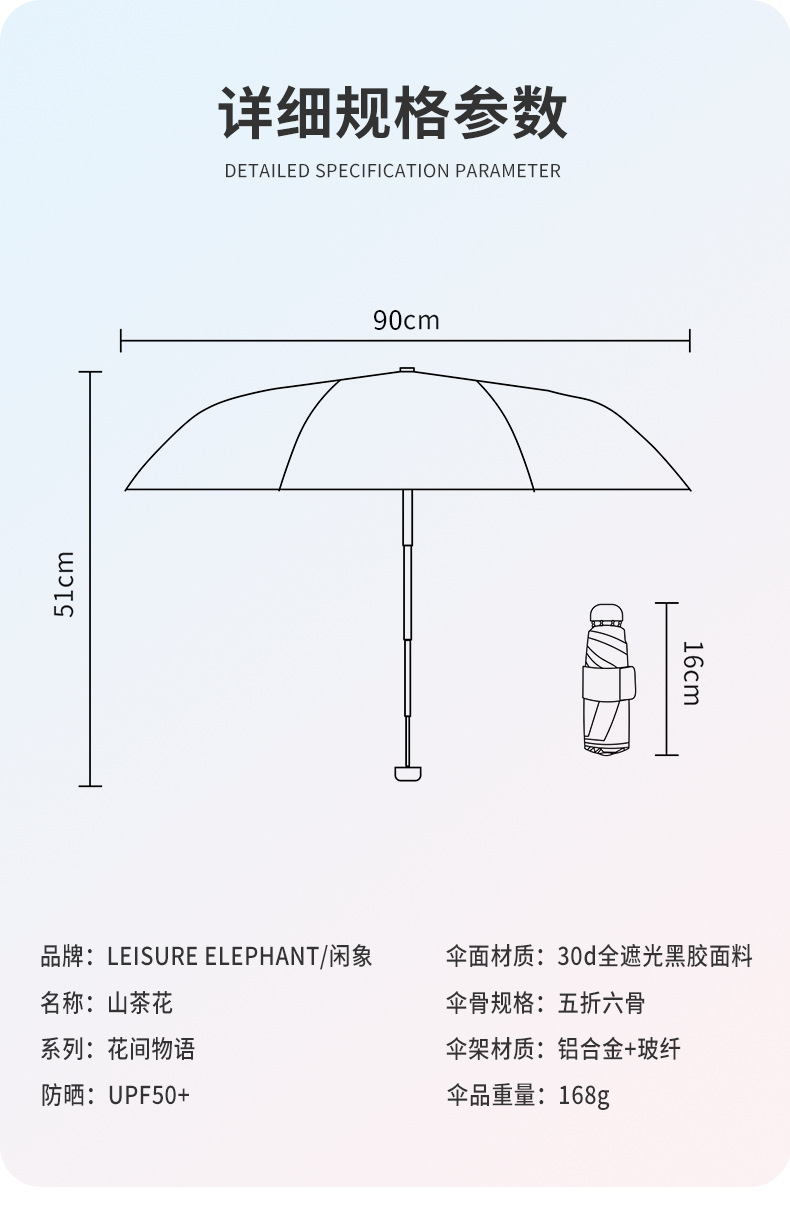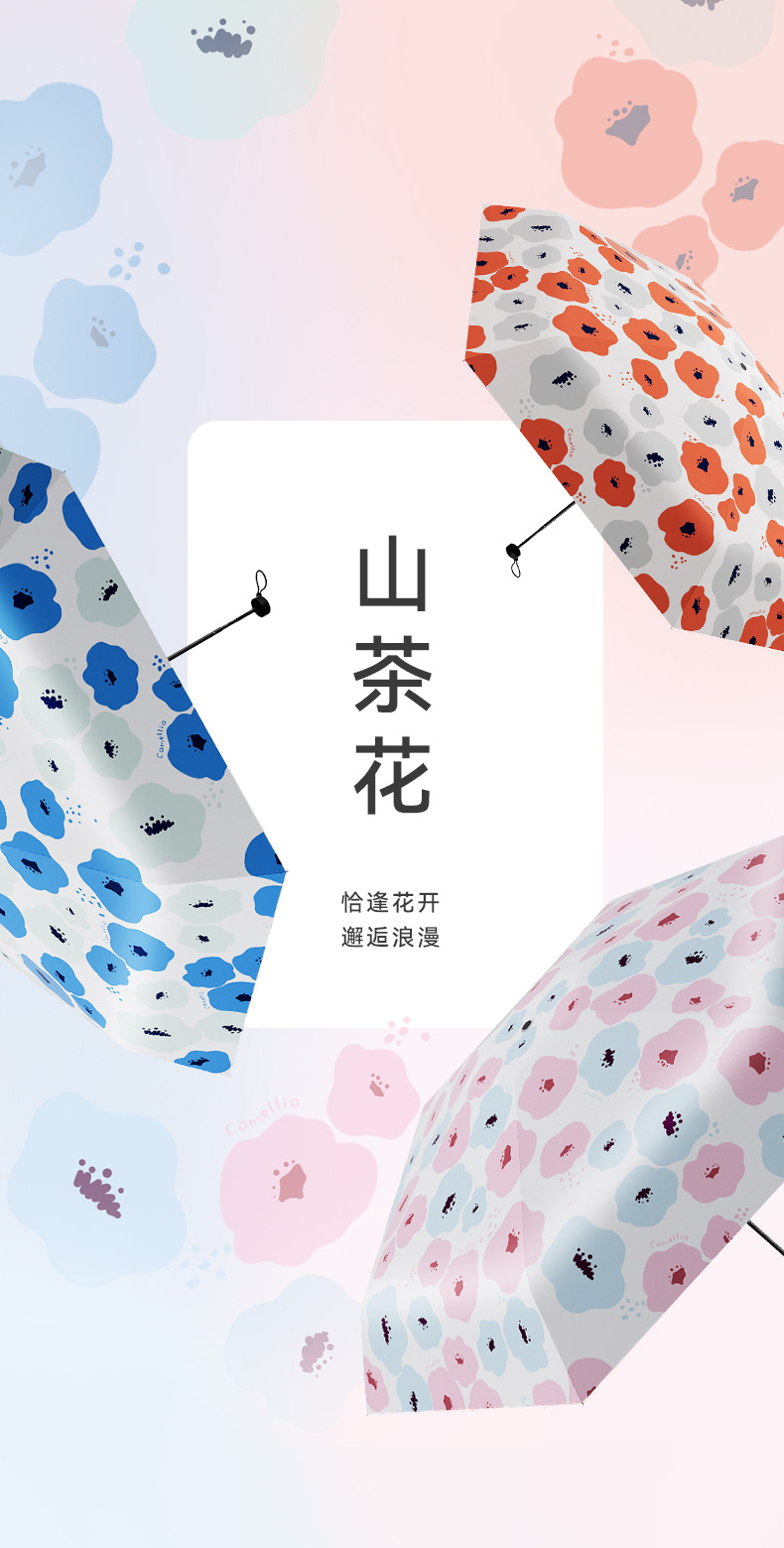 유휴 코끼리 동백 일본 스타일 신선한 스타일 50% 접이식 검은 고무 우산 휴대용 휴대용 태양 보호 및 UV 보호스토어 가기