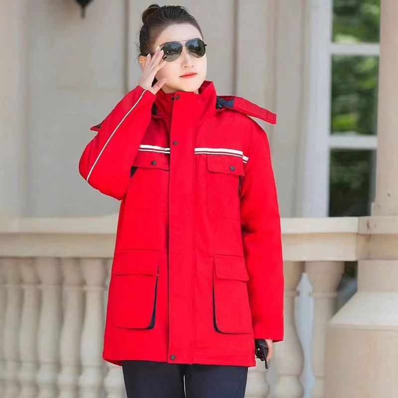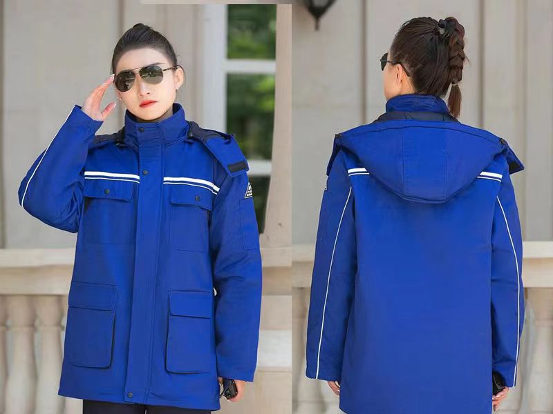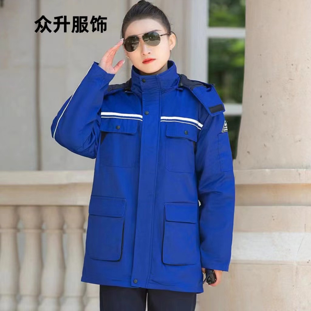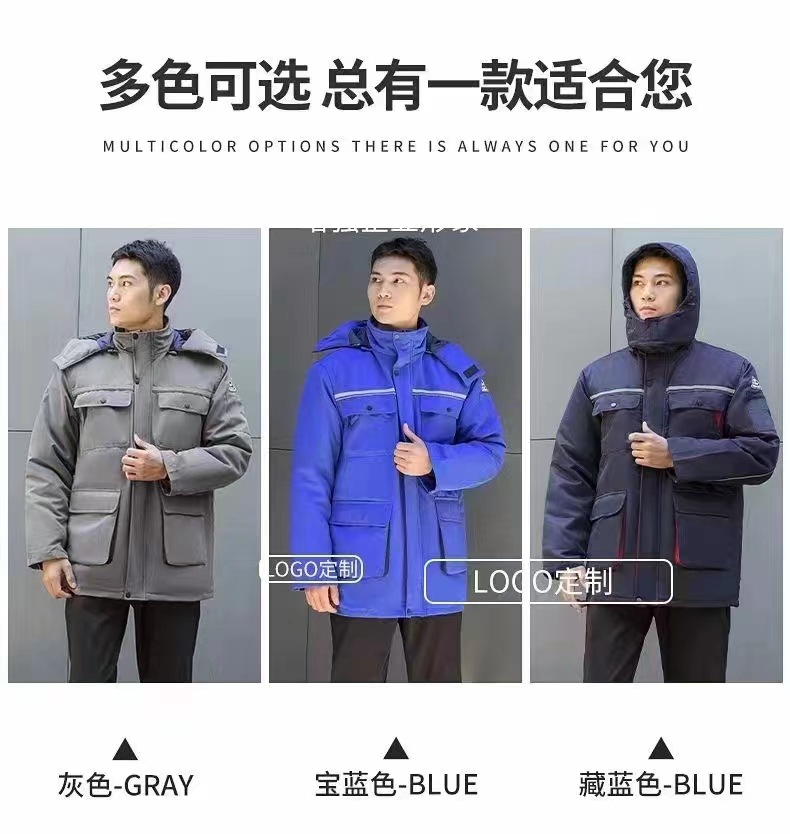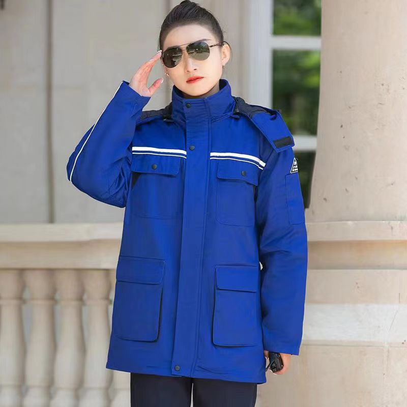 겨울 정전기 방지 작업복 면화 패딩 코트 따뜻하게 유지 따뜻한 두꺼운 반사 스트립 상단 세트 중간 길이의 생활 국수스토어 가기