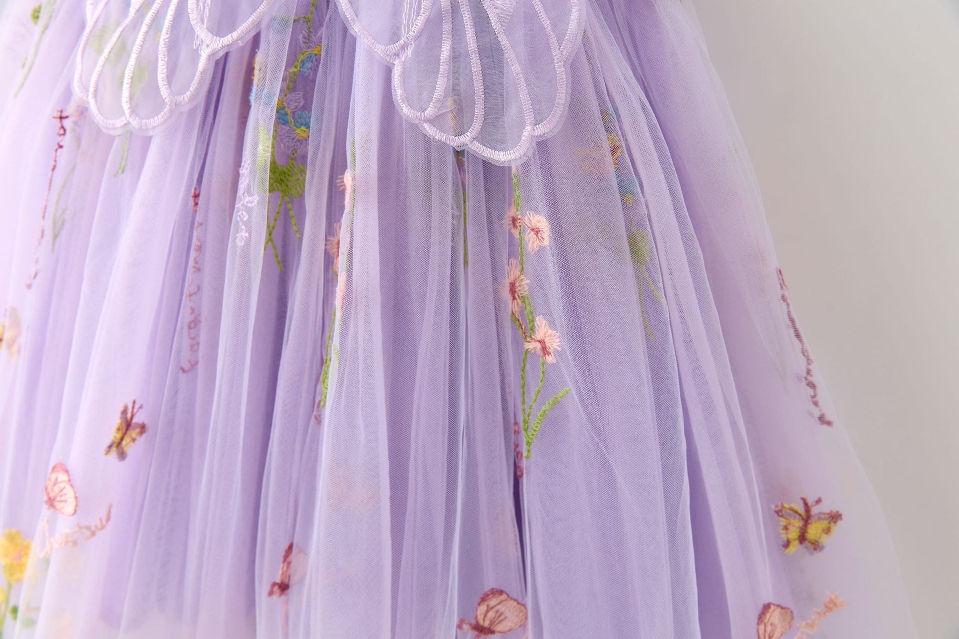 새로운 어린이 원피스 날개 원피스 소녀 공연 사진 원피스 생일 공주 원피스 자수 메쉬 원피스