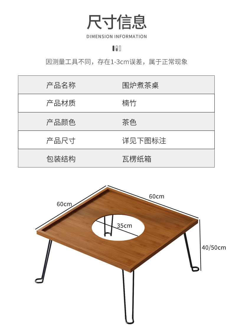 접이식 작은 테이블 야외 겨울 스토브 차 안뜰 발코니 대나무 바베큐 테이블 미니 스퀘어 식탁 도매 신제품스토어 가기