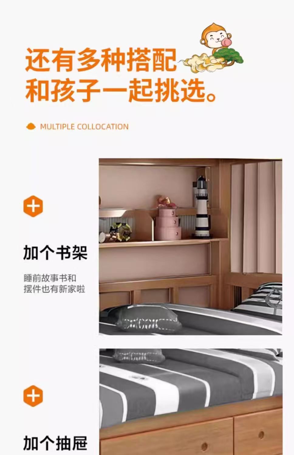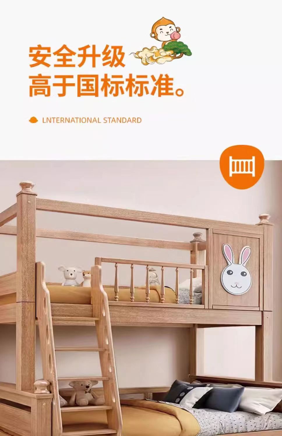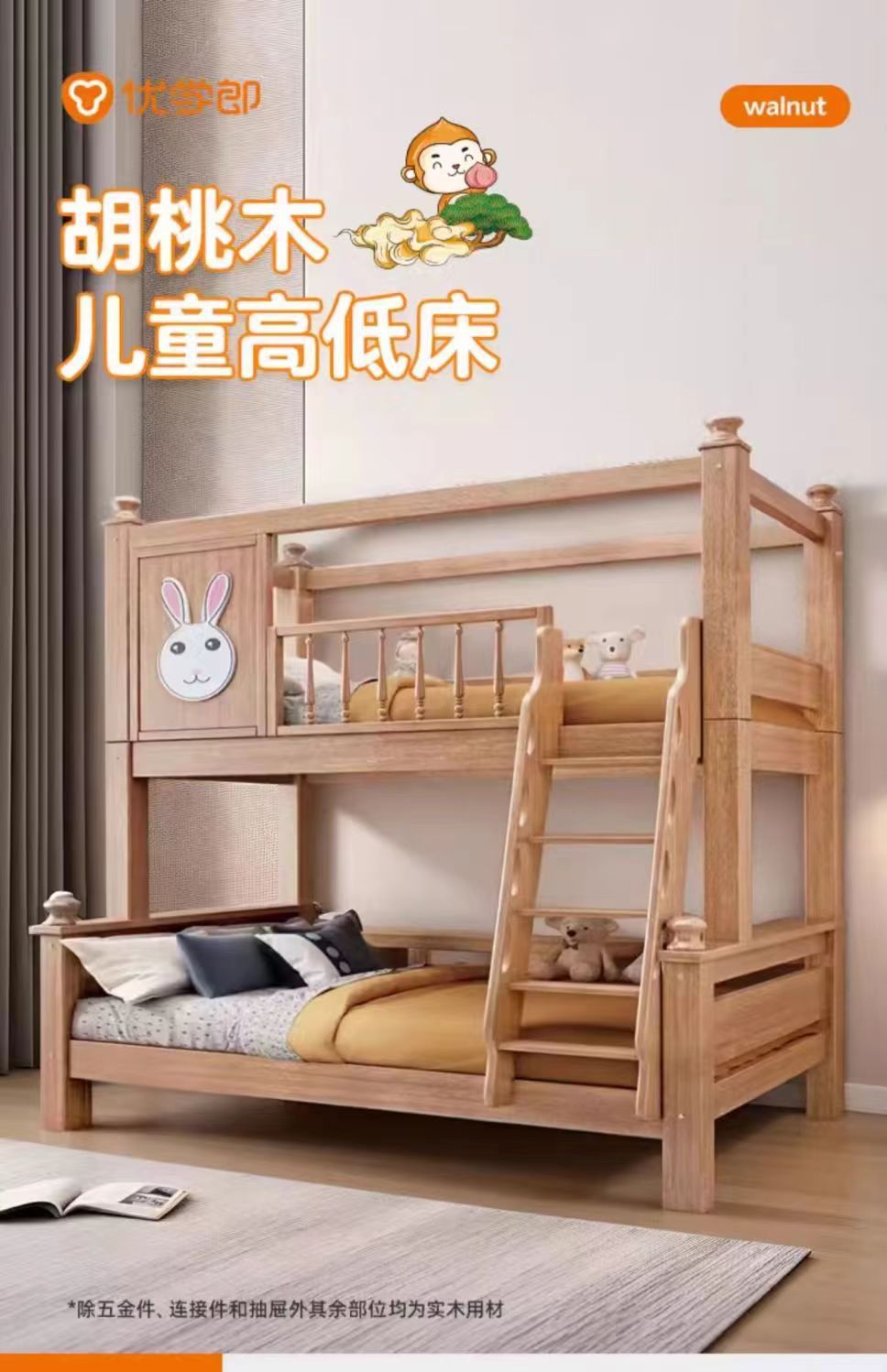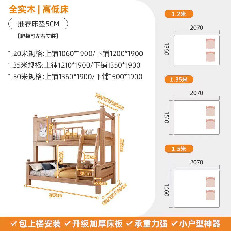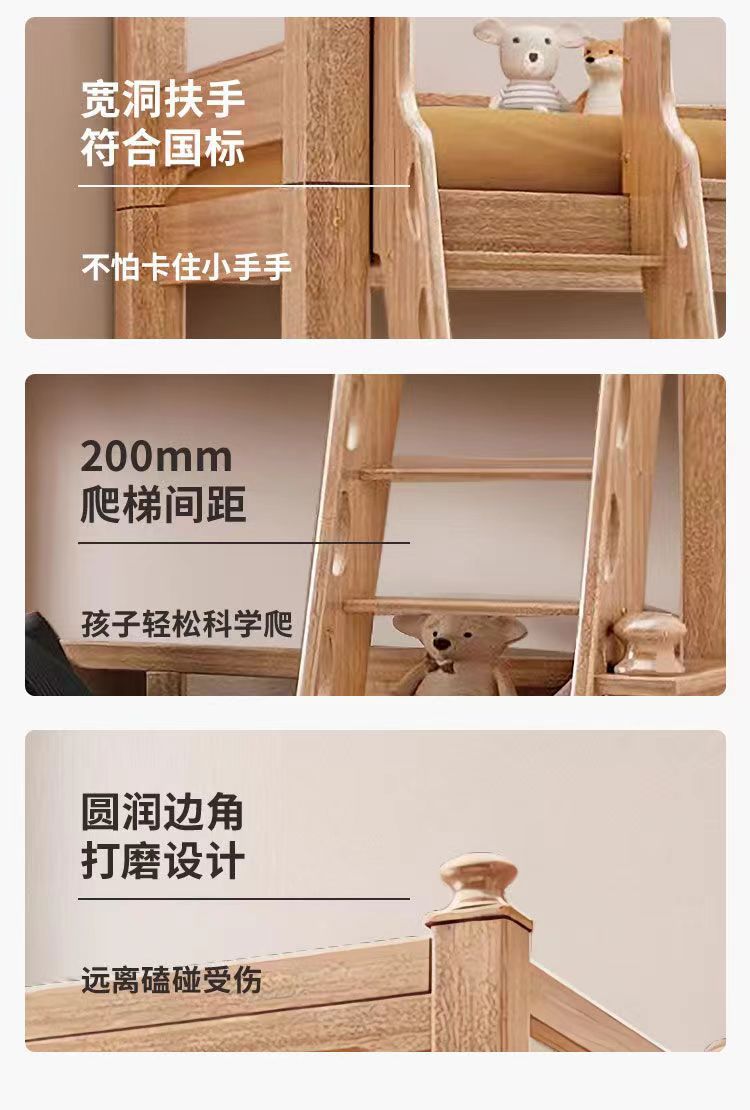 호두 어머니 침대 상하 어린이 풀 솔리드 우드 왁스 오일 다기능 두꺼운 더블 레이어 높은 낮은 침대 소년 소녀스토어 가기