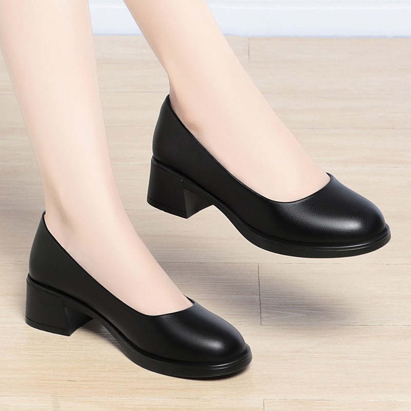 플러스 사이즈 작업 신발 여성 블랙 작업복 가죽 신발 여성 새 작업 신발 전문 소프트 솔 편안한 두꺼운 싱글 레이어 신발스토어 가기