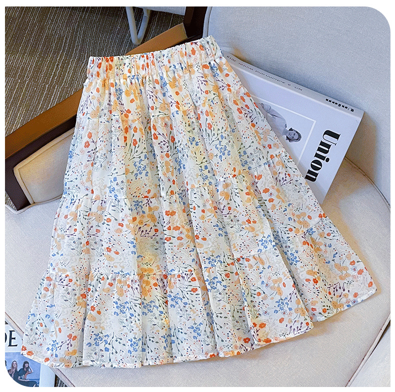 소녀의 치마 여름 2024 새로운 스타일 유행 아동복 소녀 시폰 꽃 치마 여름 원피스 어린이 치마