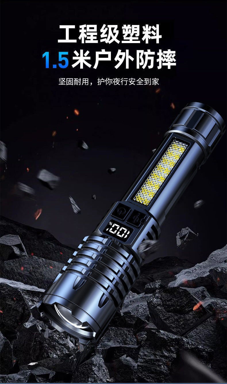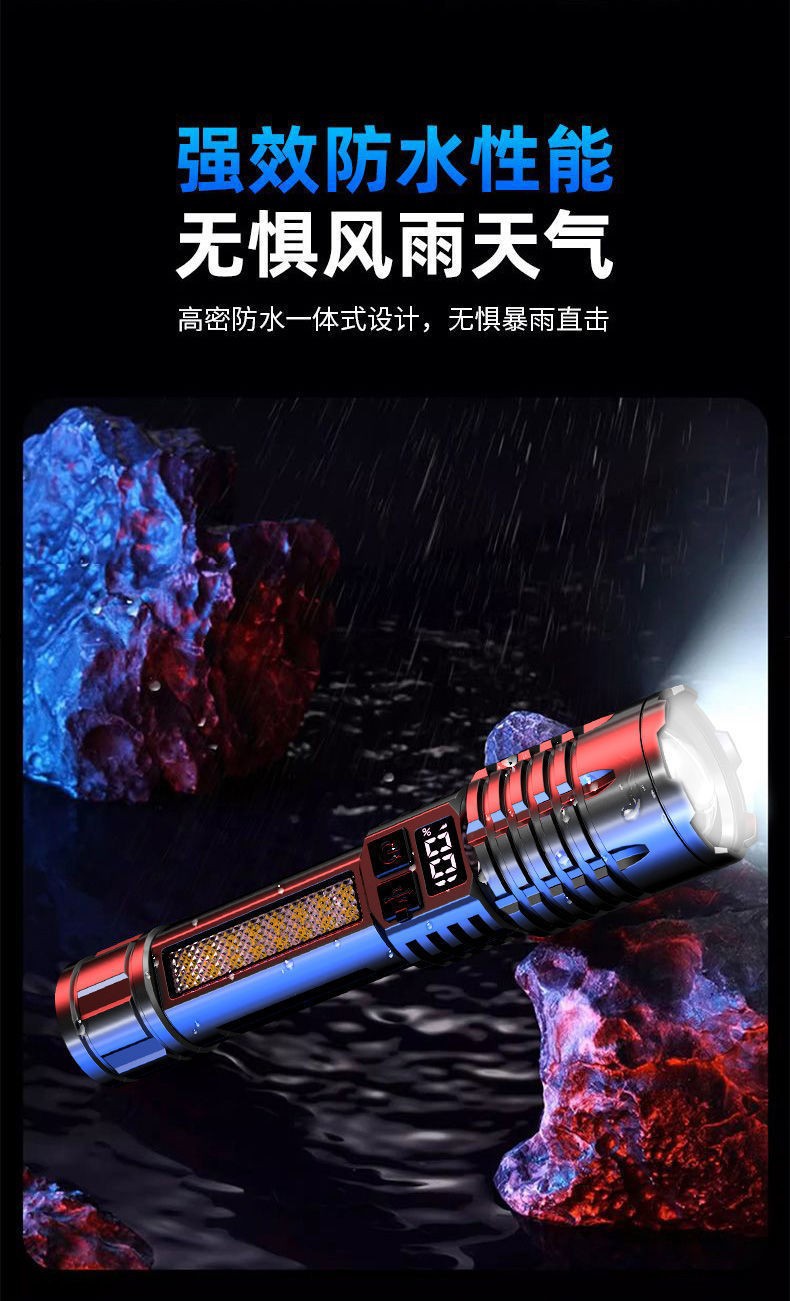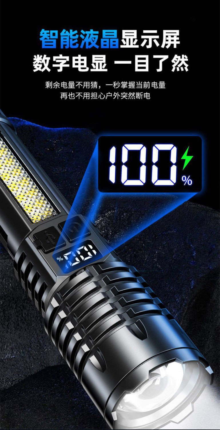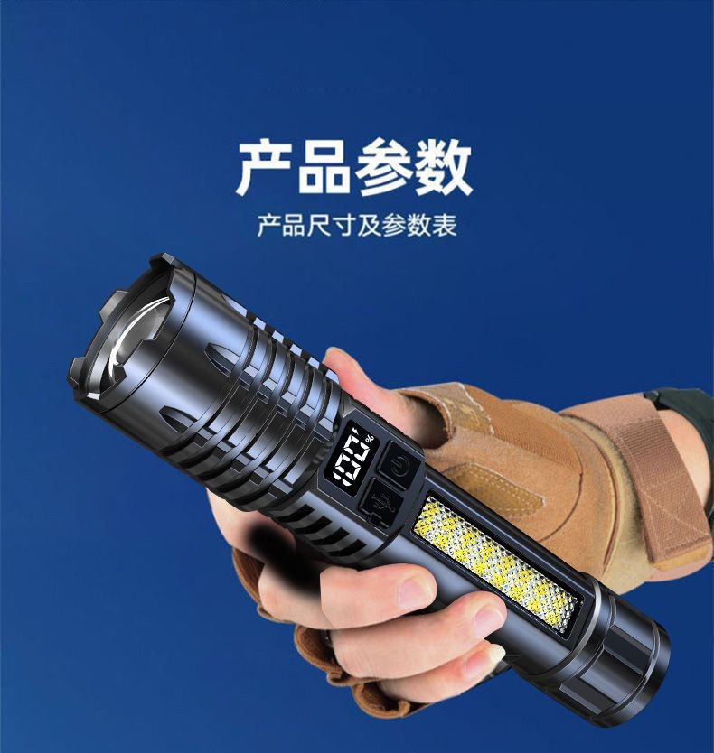 새로운 강력한 손전등 USB 충전 슈퍼 밝은 야외 장거리 줌 LED 측면 조명 디지털 디스플레이 유형-c 빠른 충전