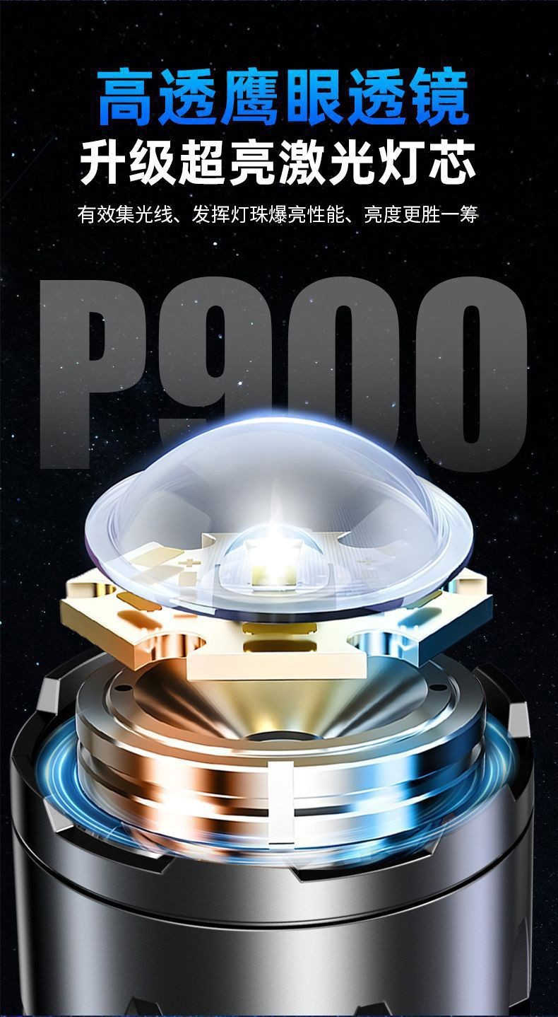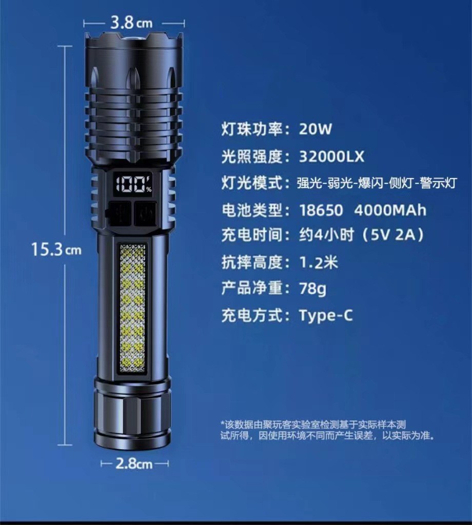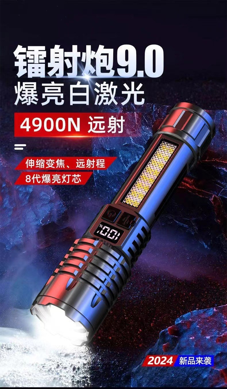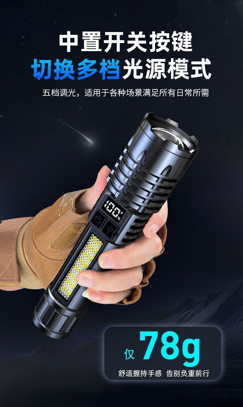 새로운 강력한 손전등 USB 충전 슈퍼 밝은 야외 장거리 줌 LED 측면 조명 디지털 디스플레이 유형-c 빠른 충전