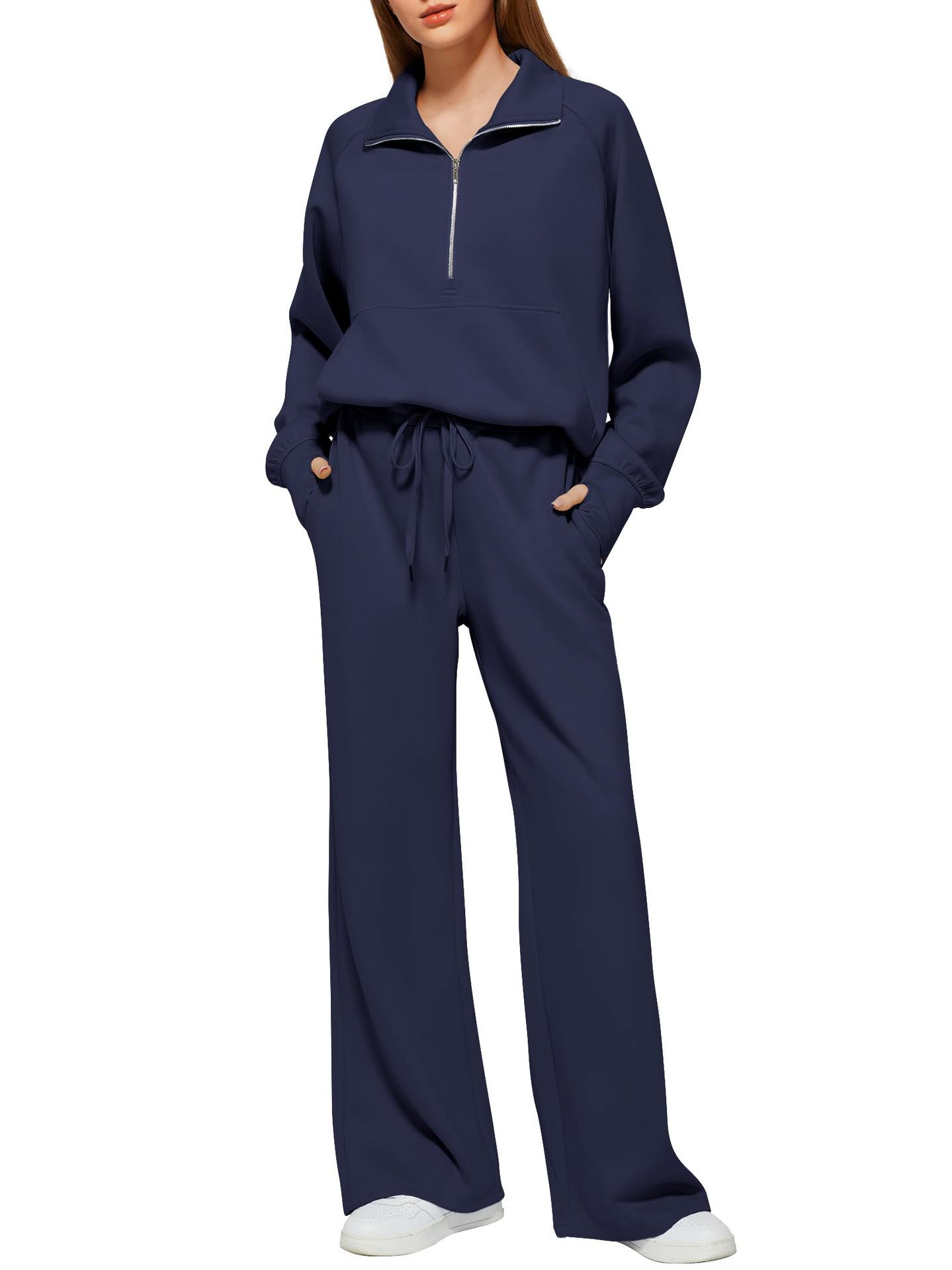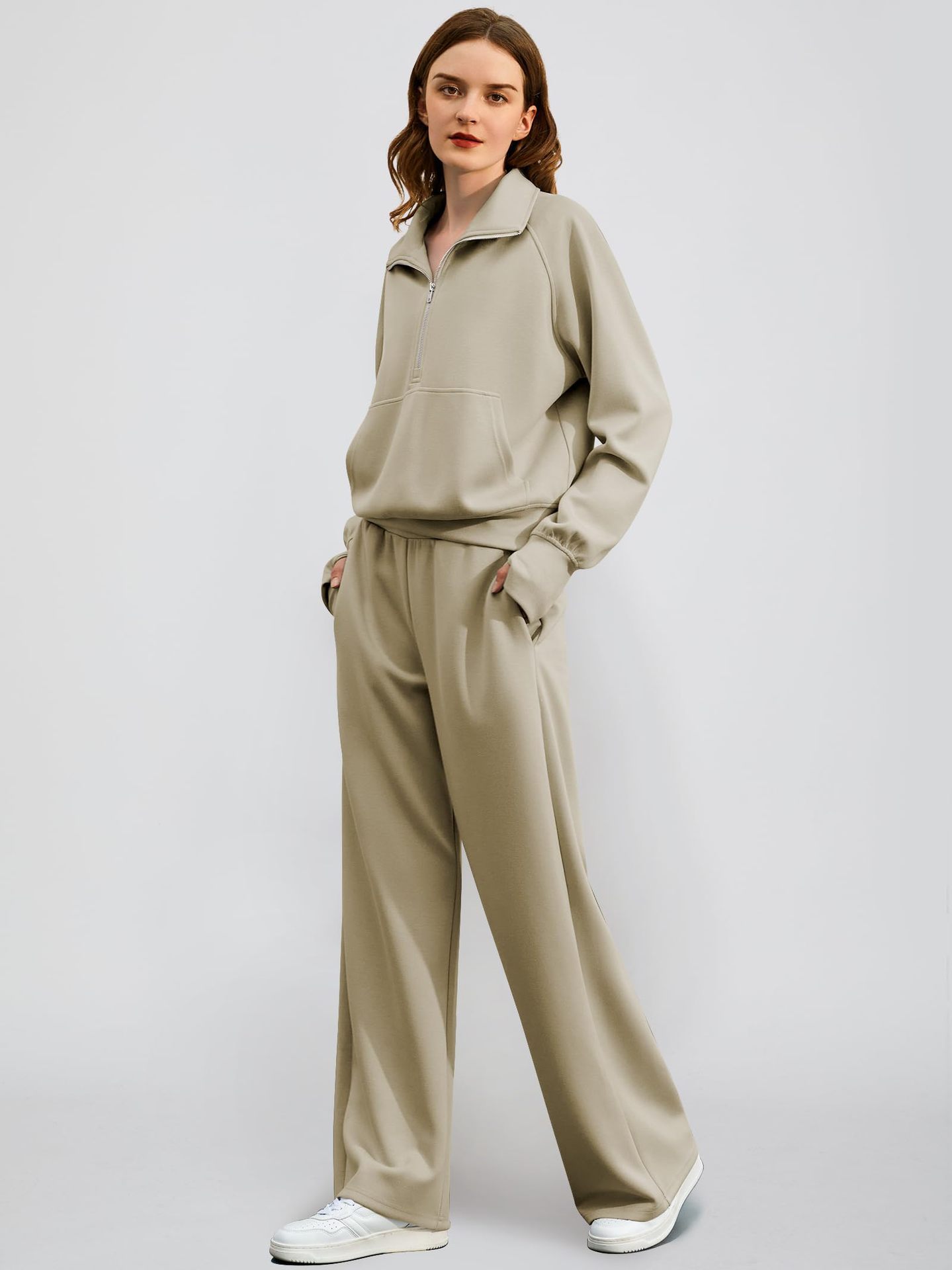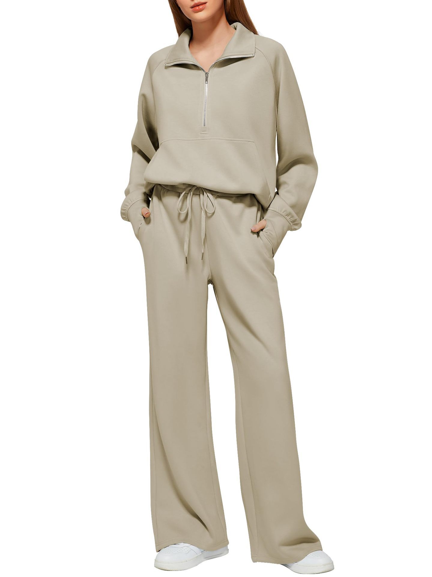 2025 유럽과 미국의 아마존 유럽과 미국 여성의 투피스 오버사이즈 하프 지퍼 스웨트 셔츠 와이드 레그 스웨트 팬츠 캐주얼 세트스토어 가기