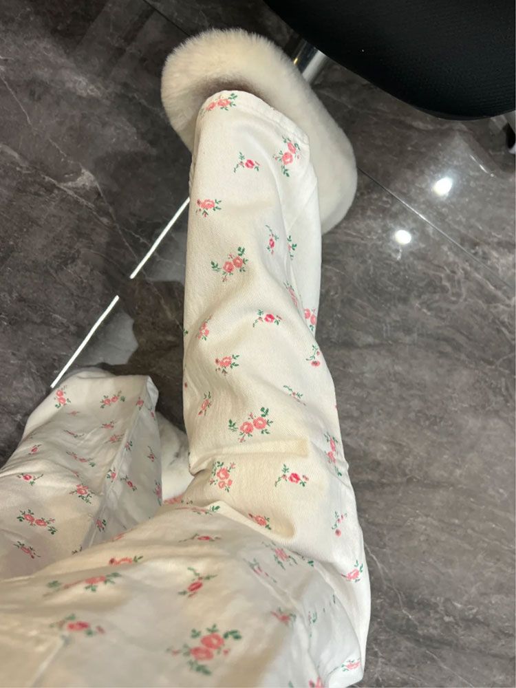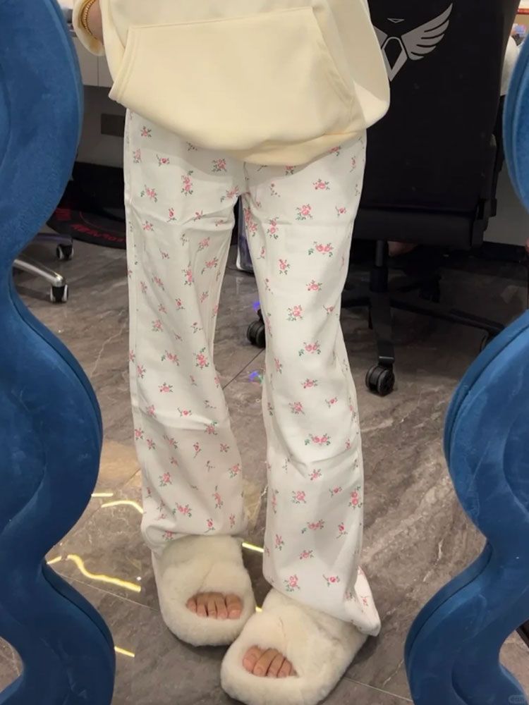 높은 허리 뜨거운 소녀 스타일 청바지 여성의 2024 새로운 틈새 꽃 디자인 센스 루즈 슬리밍 스트레이트 레그 와이드 레그 팬츠스토어 가기