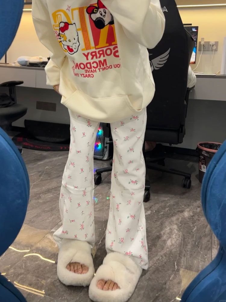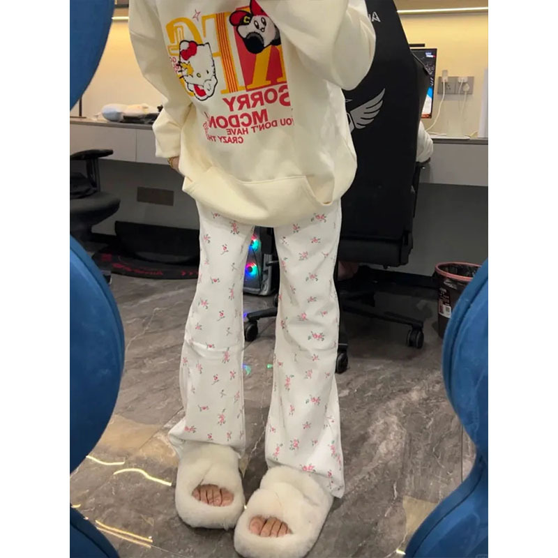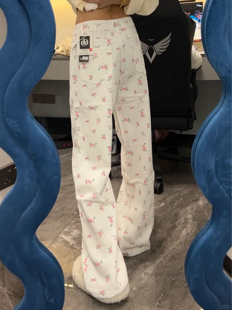 높은 허리 뜨거운 소녀 스타일 청바지 여성의 2024 새로운 틈새 꽃 디자인 센스 루즈 슬리밍 스트레이트 레그 와이드 레그 팬츠
