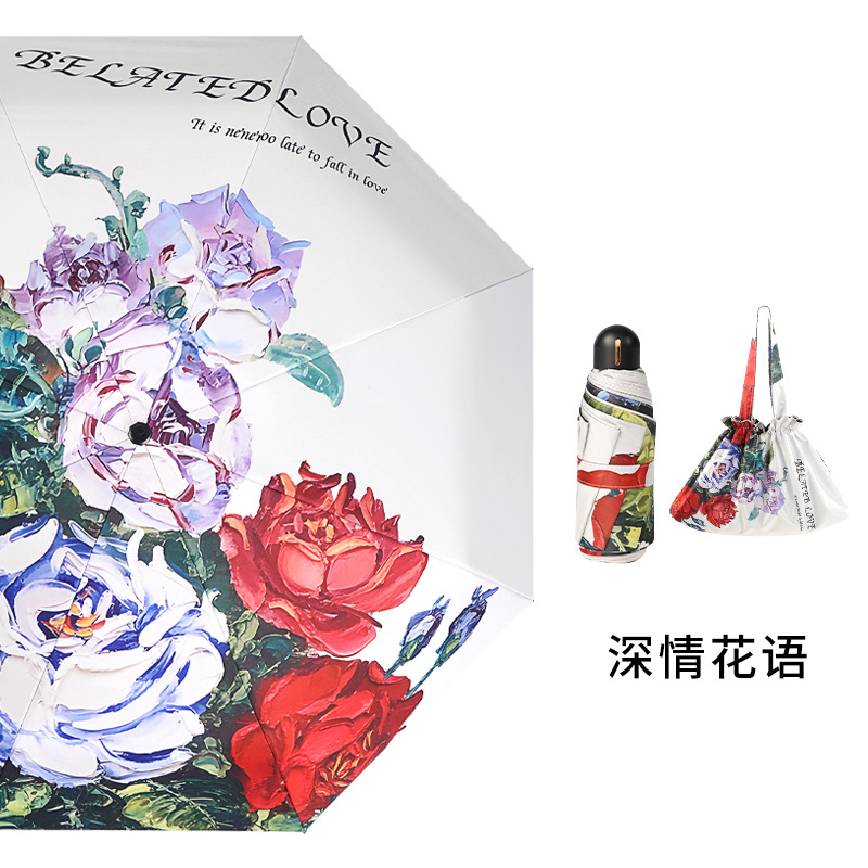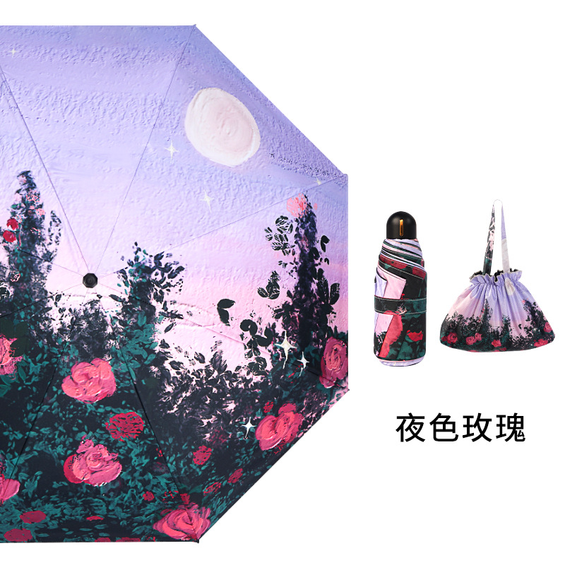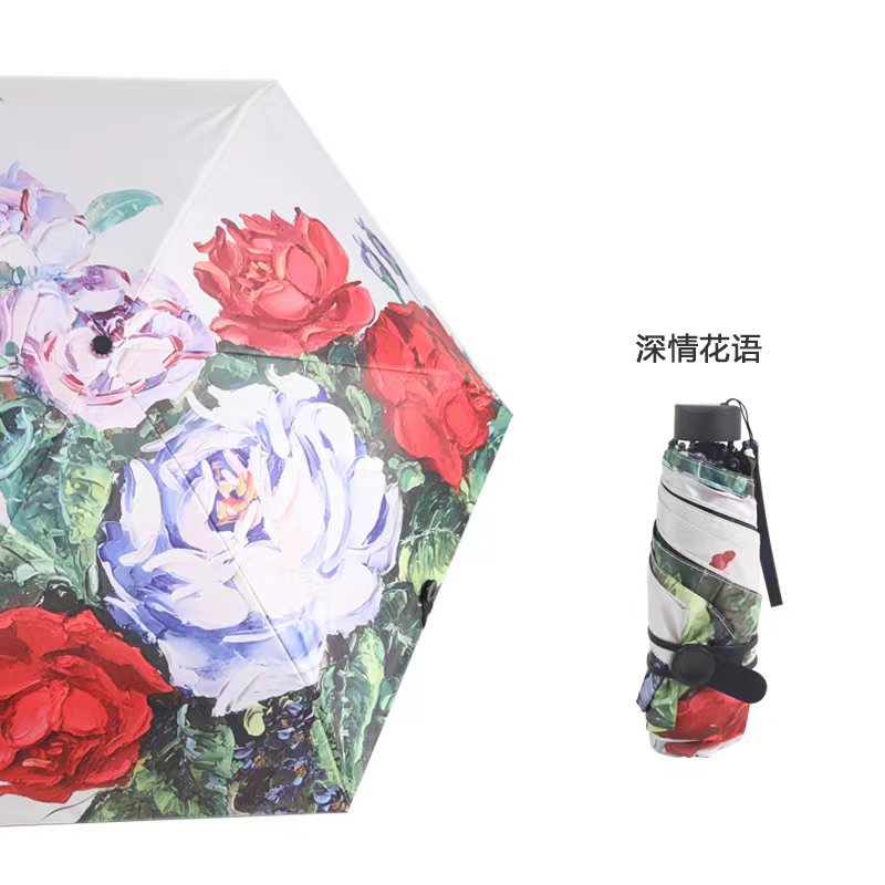 캡슐 햇살 우산 야외 선 스크린 꽃 선물 우산 맑고 비오는 이중 사용 휴대용 접는 태양 우산 로고 광고스토어 가기