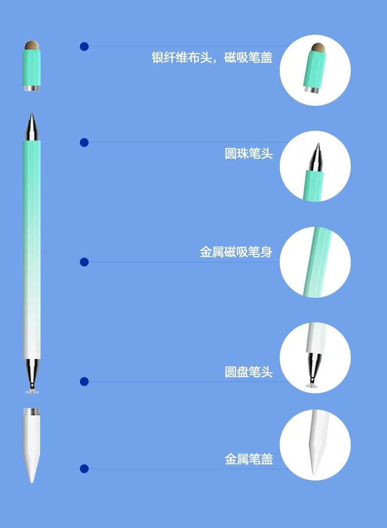 휴대 전화 태블릿 ipad 애플 화웨이 정전식 펜을위한 올넷 저가 올메탈 3 인 1 마그네틱 터치 스크린 펜