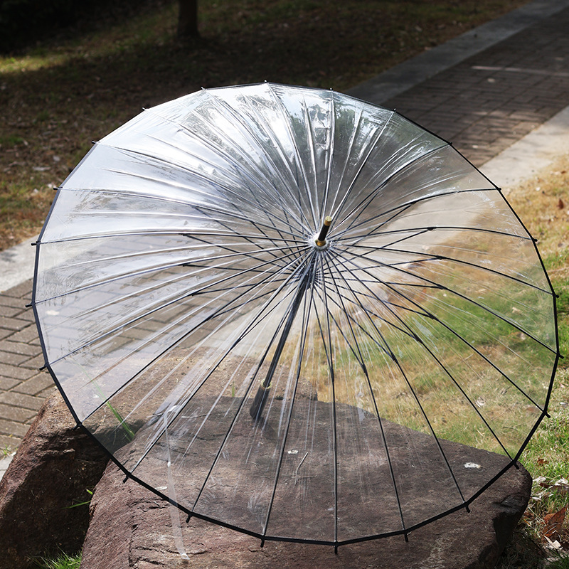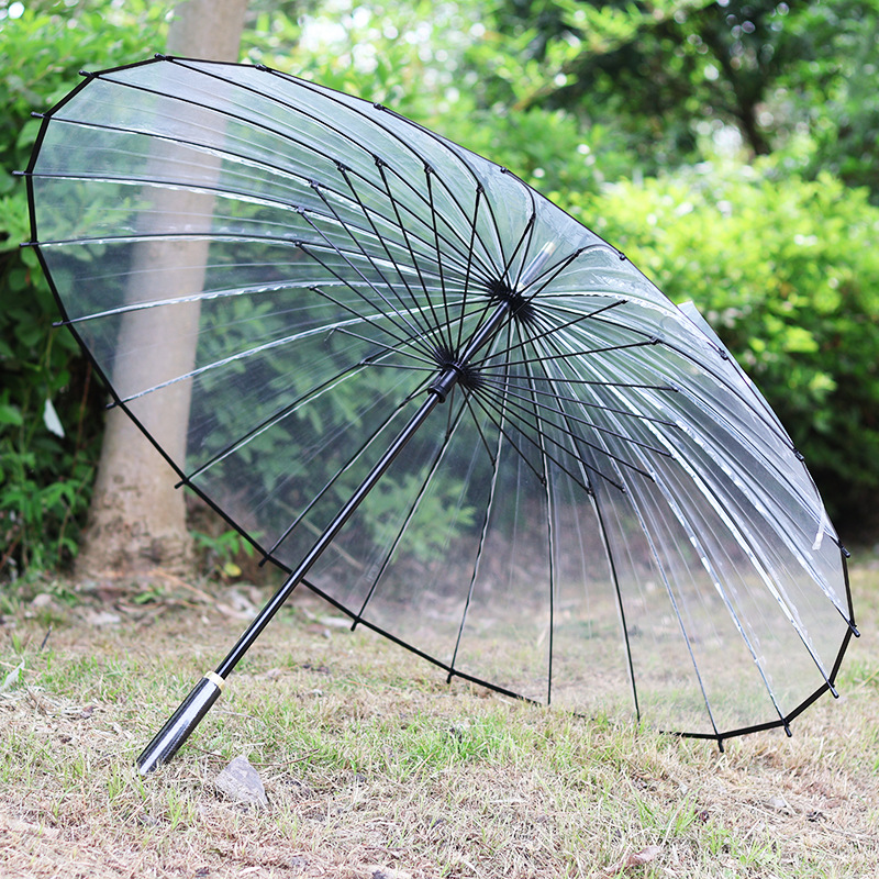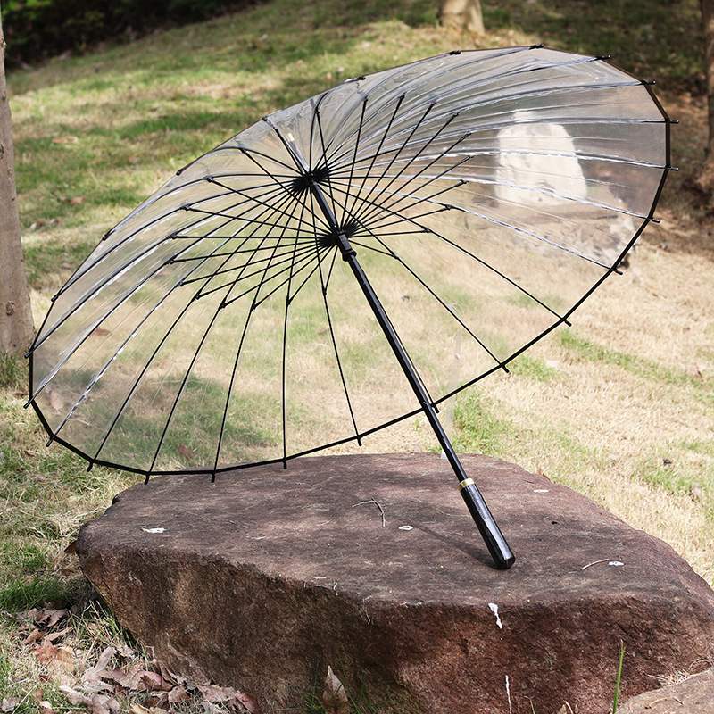 24 대형 더블 자동 투명 긴 손잡이 우산 남성과 여성을위한 매우 강한 방풍 저항