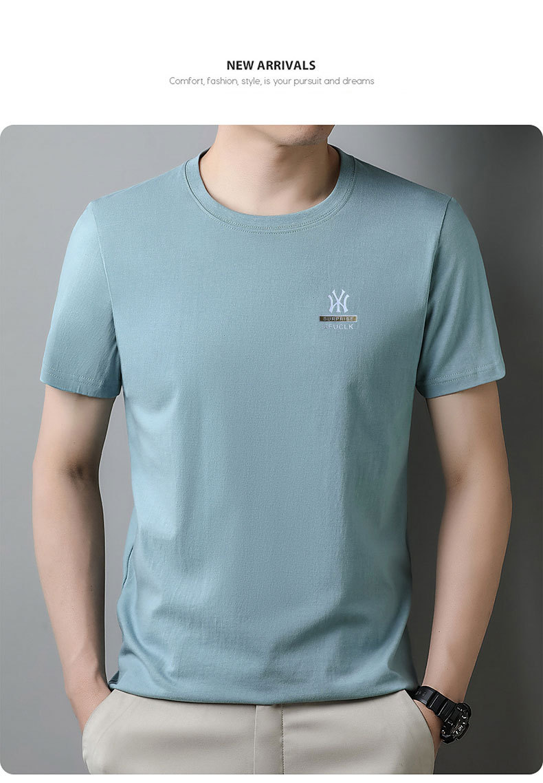 면 반팔 티셔츠 남성용 여름 새로운 솔리드 컬러 라운드 넥 캐주얼 심플 얇은 티셔츠 솔리드 컬러 여름웨어 남성용스토어 가기