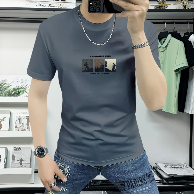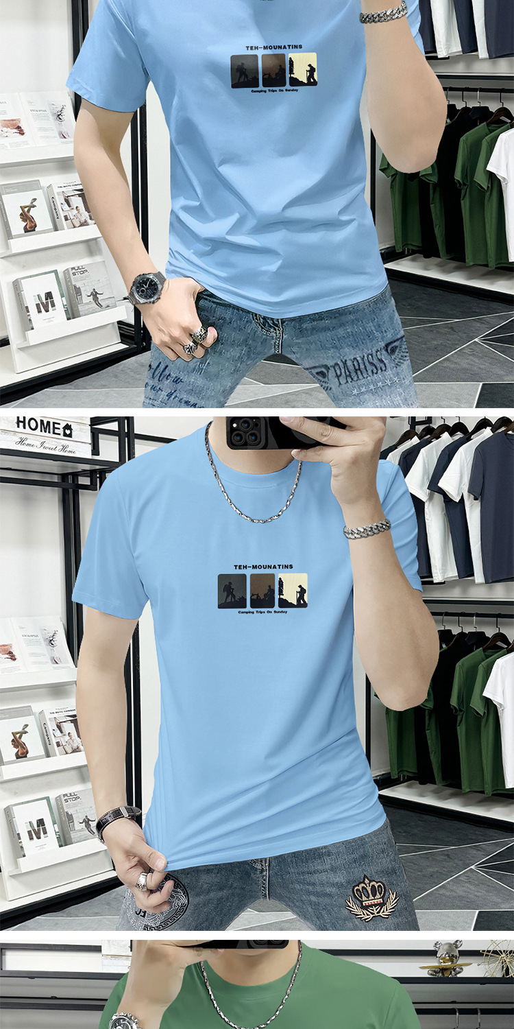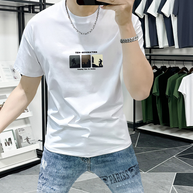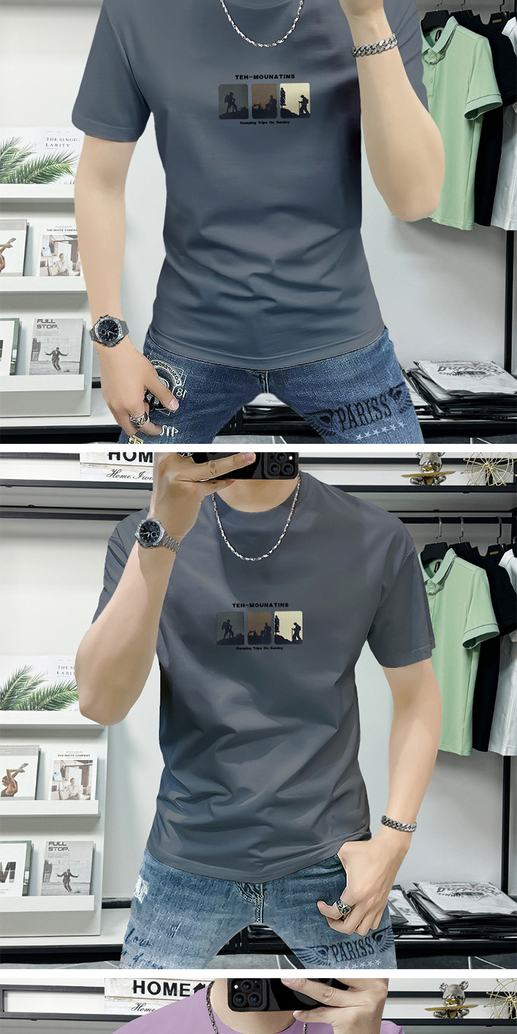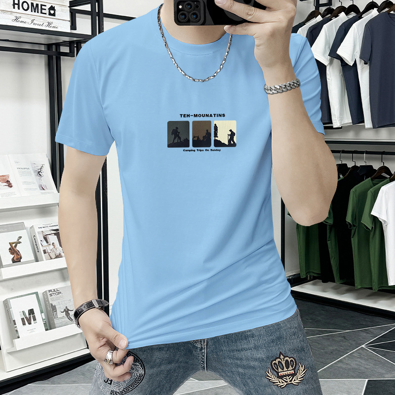 Lanshengyi 반팔 티셔츠 남성용 라운드넥 2025 여름 신상 트렌디 패션 프린트 반팔 트렌디 브랜드 남성 의류 티셔츠스토어 가기