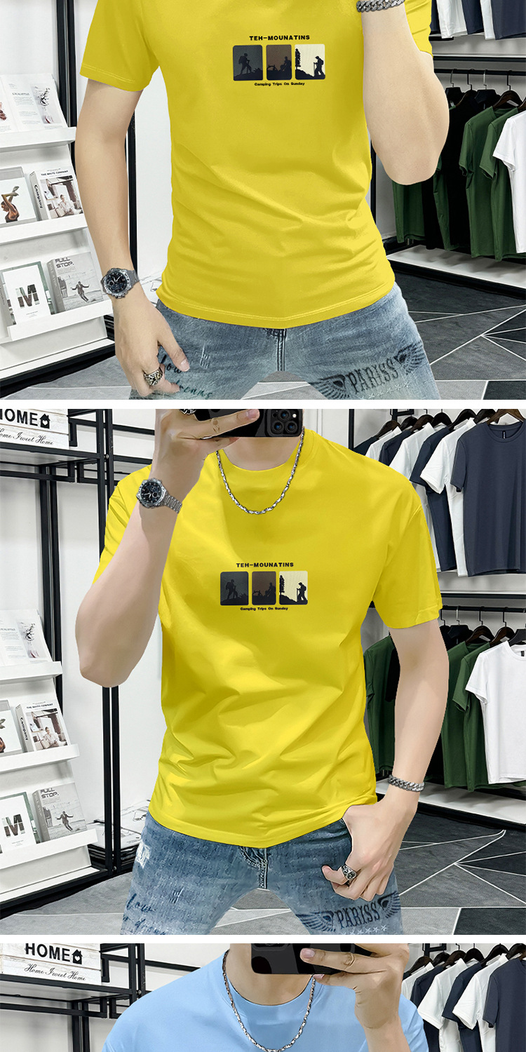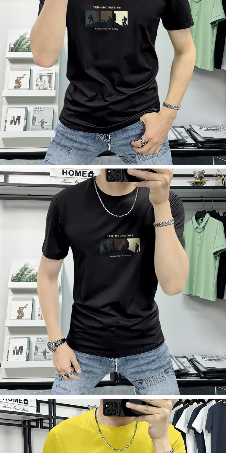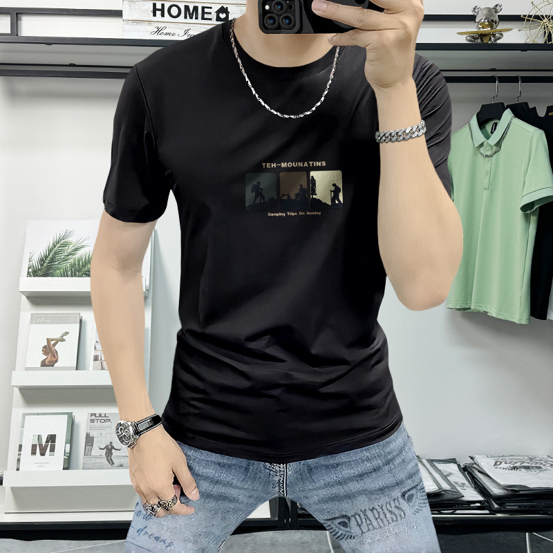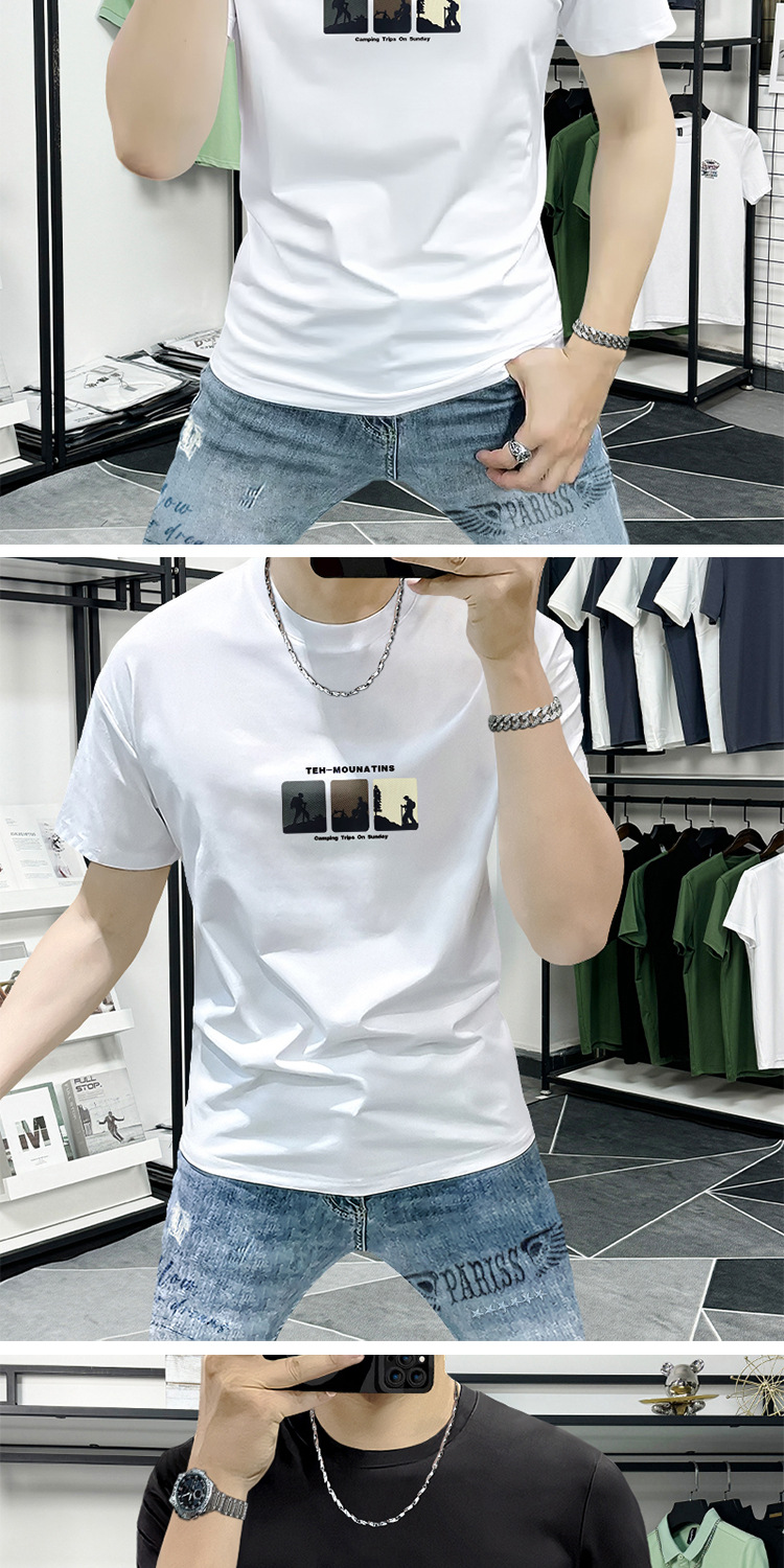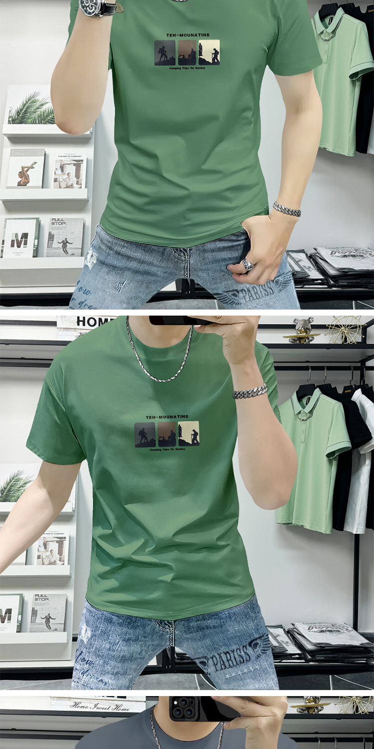 Lanshengyi 반팔 티셔츠 남성용 라운드넥 2025 여름 신상 트렌디 패션 프린트 반팔 트렌디 브랜드 남성 의류 티셔츠스토어 가기