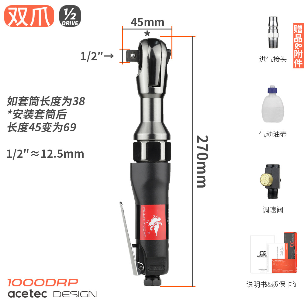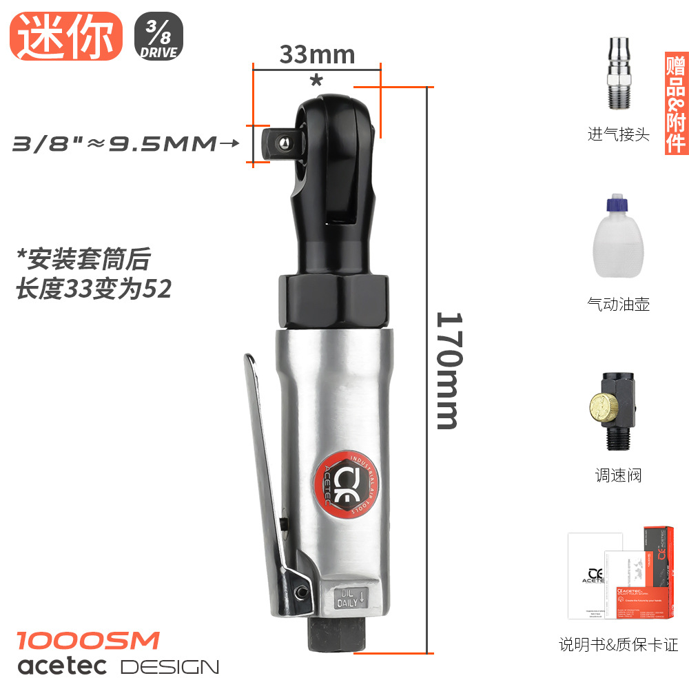 ACETEC Astec 공압 래칫 렌치 대형 토크 90 도 직각 에어 건 1/2 중형 3/8 소형 플라이 1/4스토어 가기